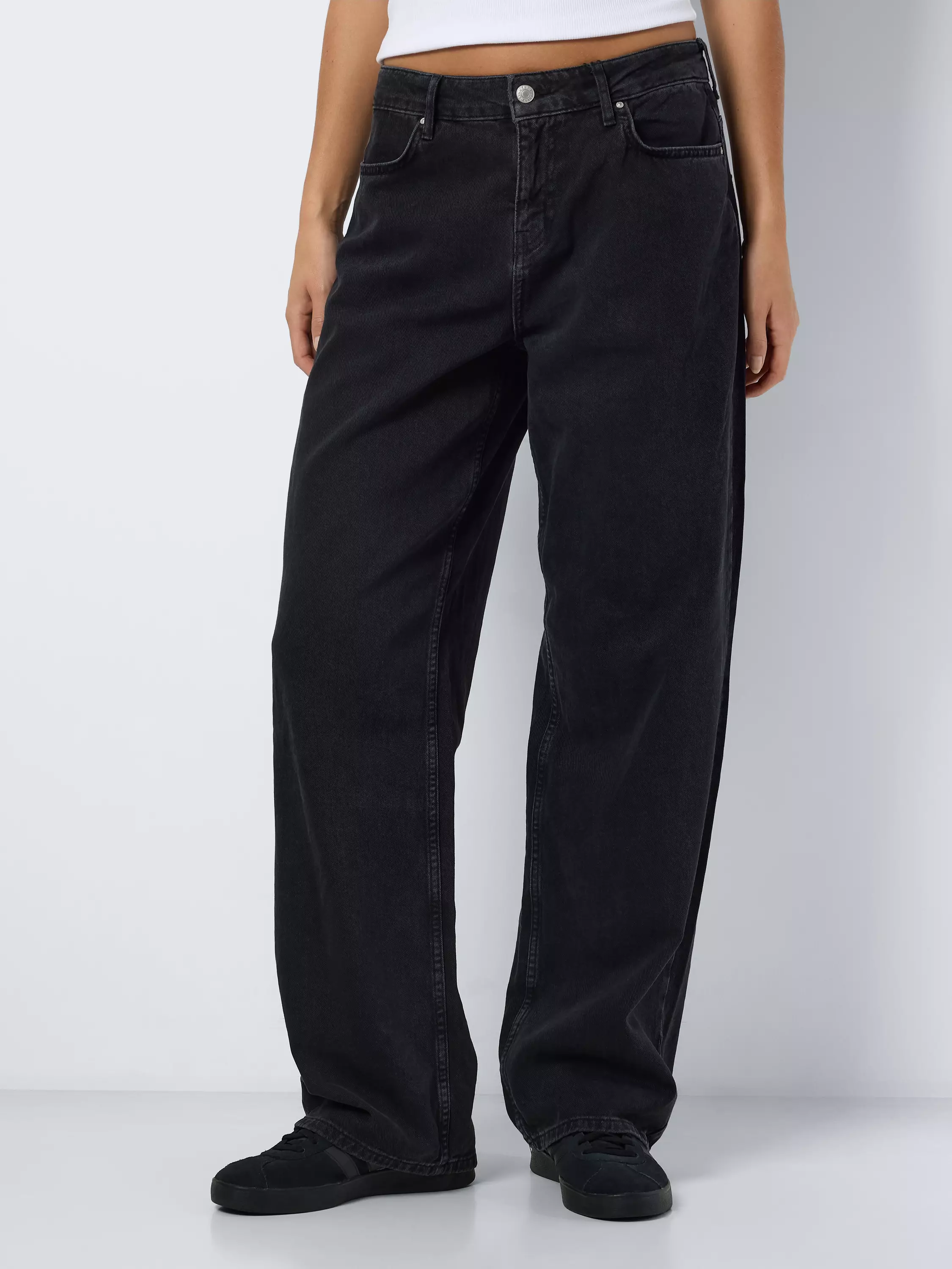 Baggy-farkut, joissa on normaali vyötärönkorkeus. Väri on kulutettu musta.
