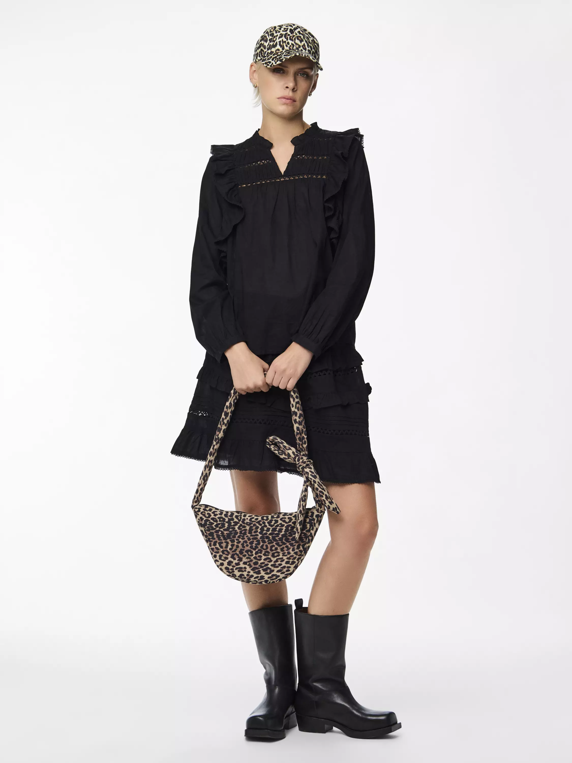 Kiva topattu bumbag, jonka voi lyhentää solmulla. Laukussa on solmu ja vetoketju. Laukun sisäpuolella on vetoketjullinen tasku. Laukun korkeus 17,5 cm, leveys 31 cm ja syvyys 8 cm.