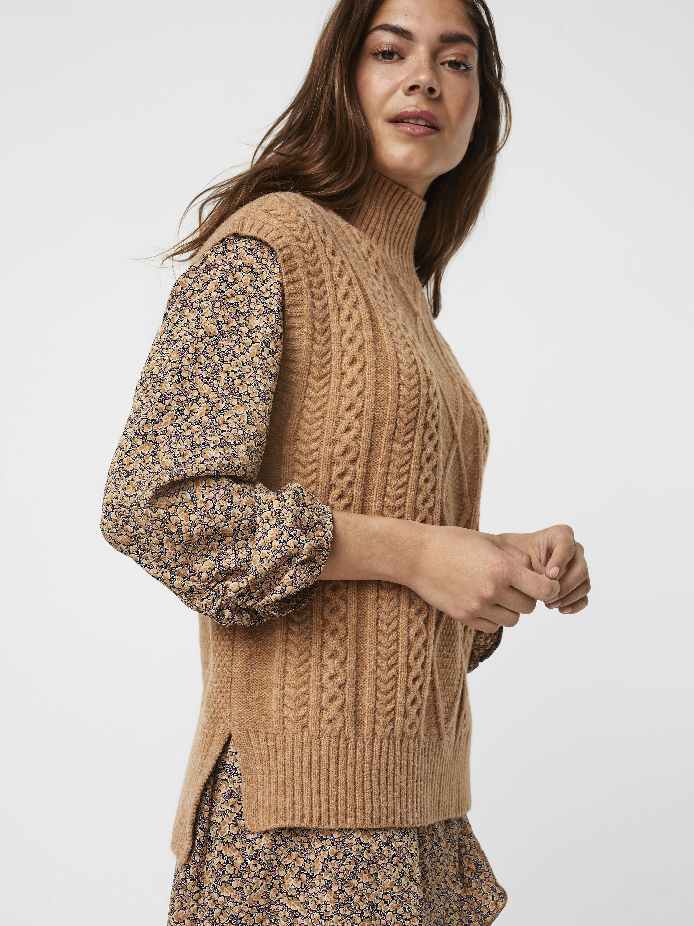 Liivissä on korkea kaulus ja halkio helmassa. Korkea kaulus lämmittää kylmänäkin päivänä!