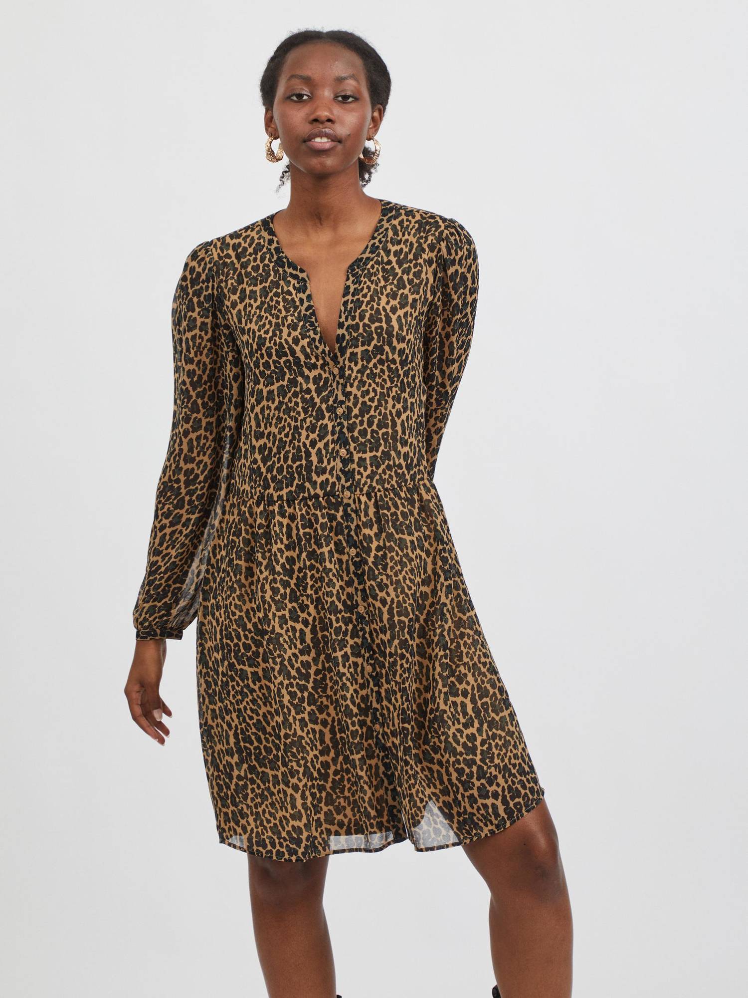 Polvimittainen paitamekko, jossa on edessä napitus alas saakka. V-pääntie ja läpikuultavat pitkät hihat, muuten vuoritettu.