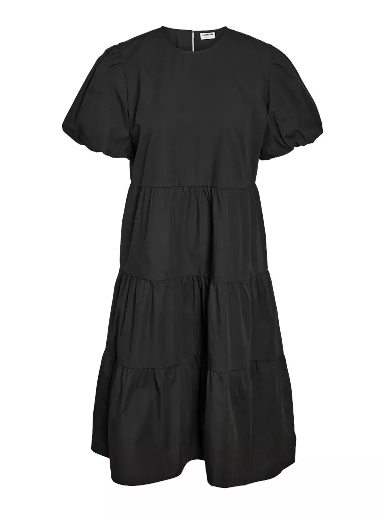 Pitkä salsamekko, jossa on kauniit puffihihat. Hihansuissa on joustavat kuminauhat. Mekossa on kaksi sivutaskua.