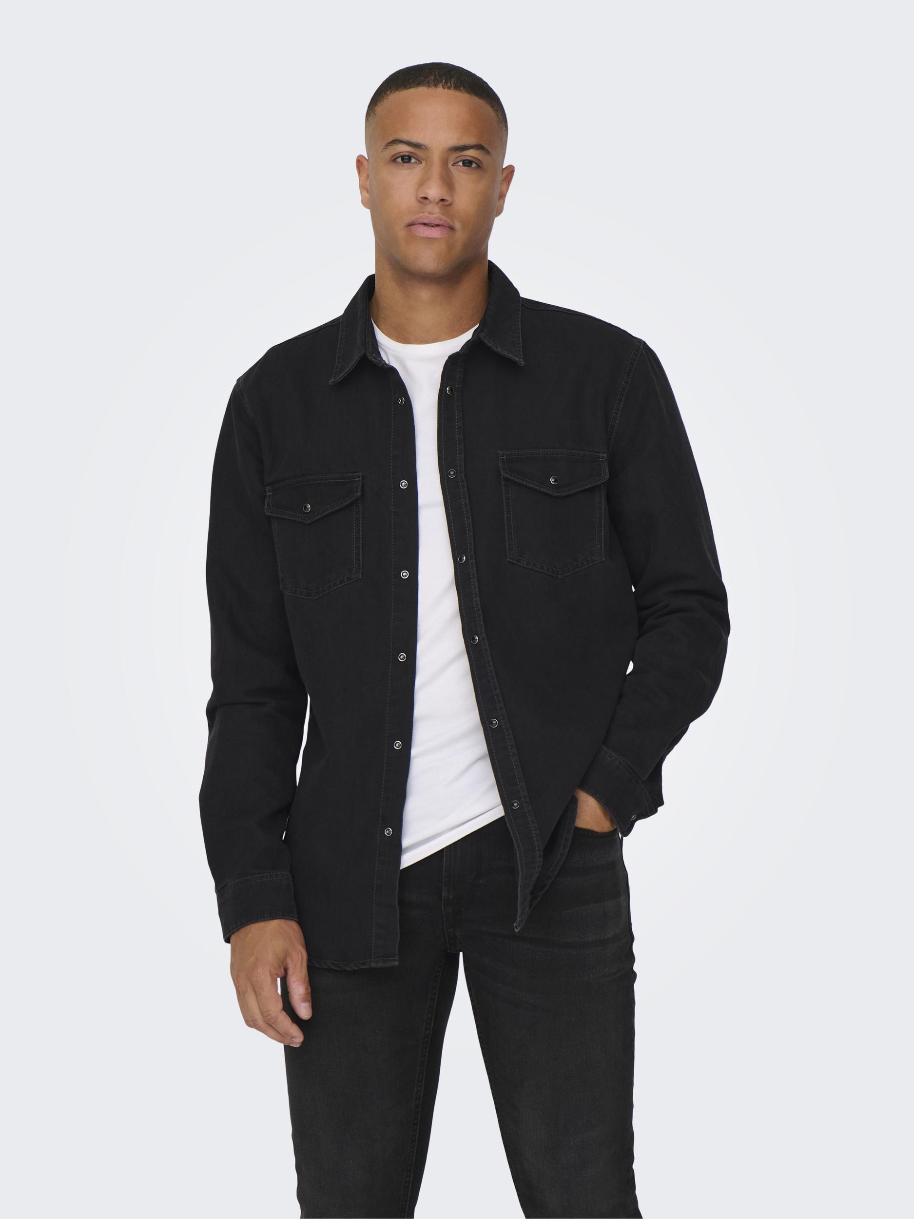 Farkkupaita, jossa edessä rintataskut ja nepparikiinnitys.