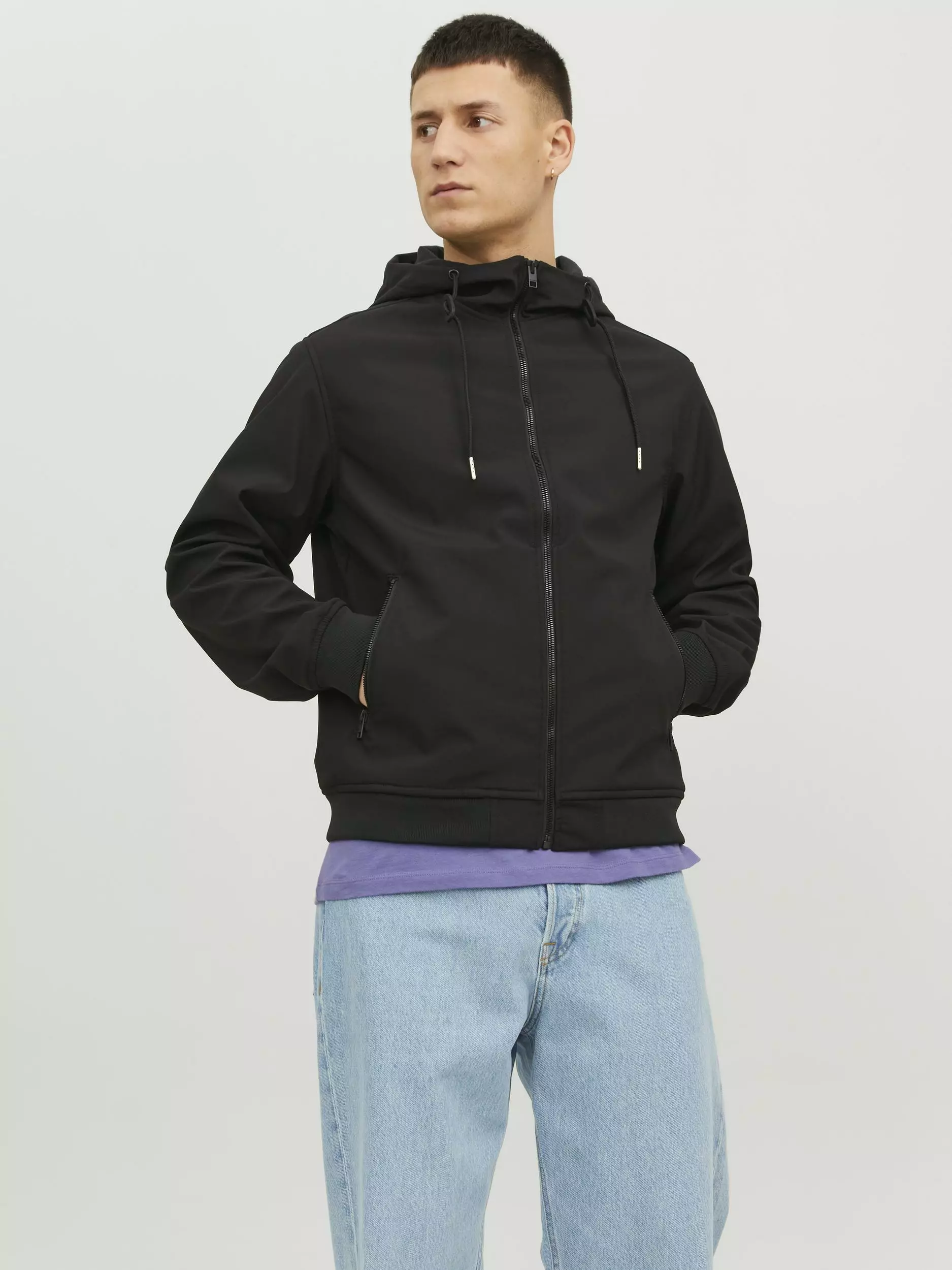 Hupullinen softshell-pusakka, jossa on vetoketjutaskut. Takin helmassa ja hihansuissa on resorit.
