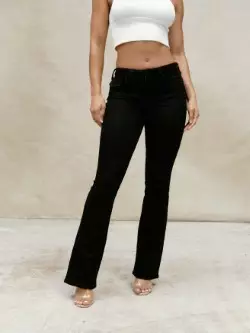 Bootcut farkut, joissa on keskikorkea vyötärö ja mukavasti joustoa. Farkuissa on läpälliset takataskut.