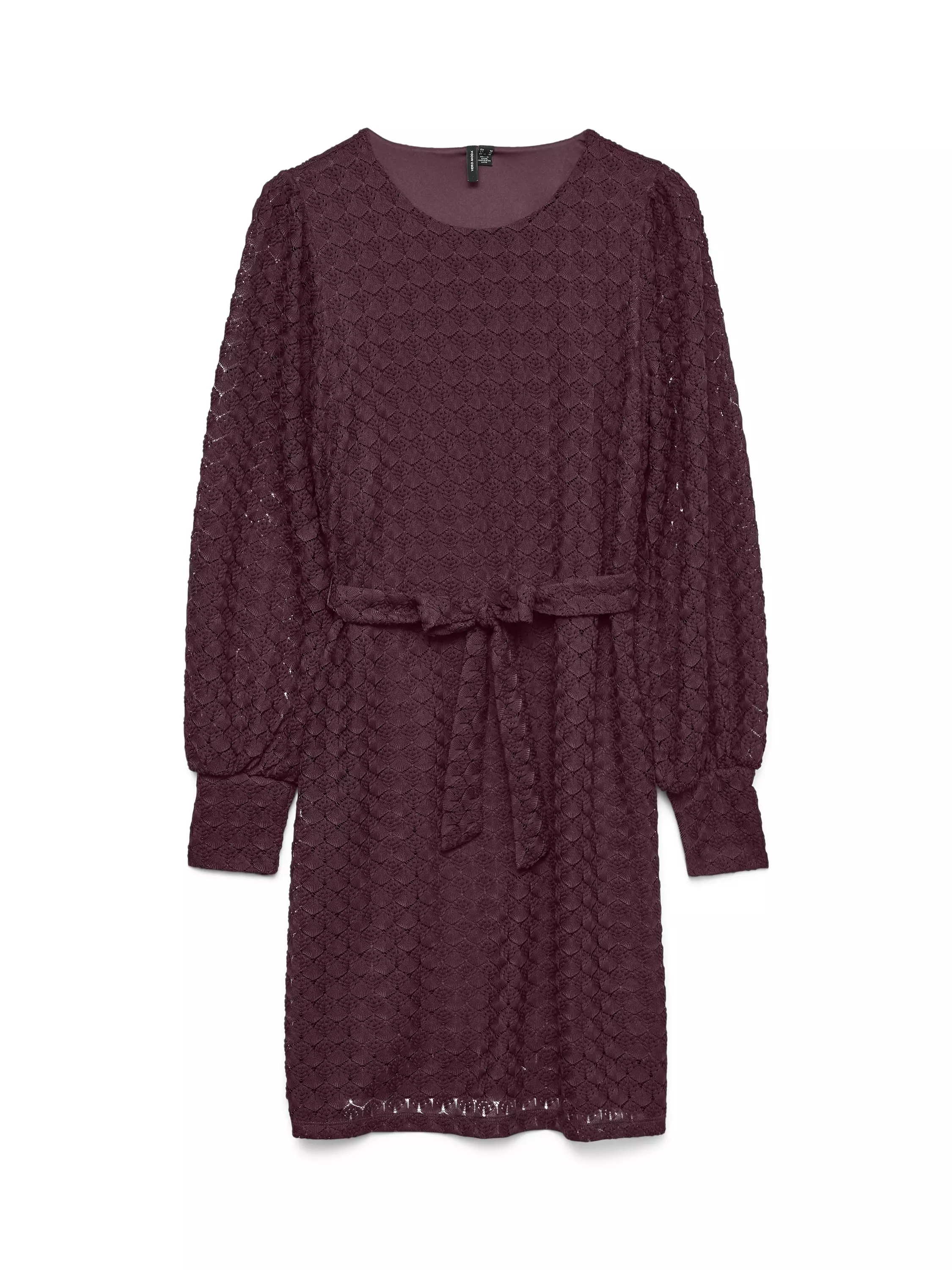 Pitkähihainen vuorillinen pitsimekko, jossa on kauniit puffihihat. Mekon hihat on läpikuultavat ja vyötäröllä on vyötärönauha.