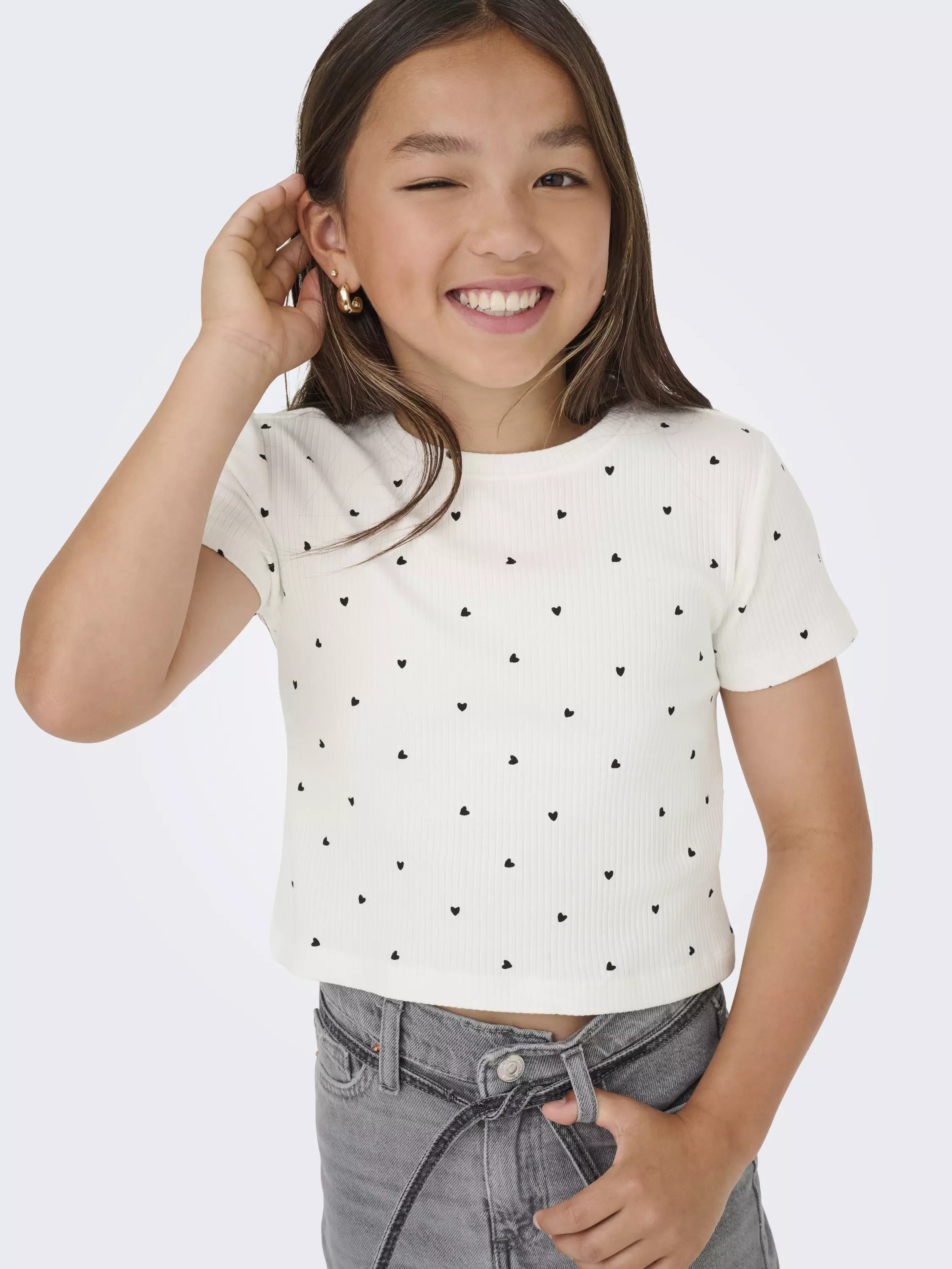 Ribbi-kankainen joustava t-paita, jossa on kivat printit.