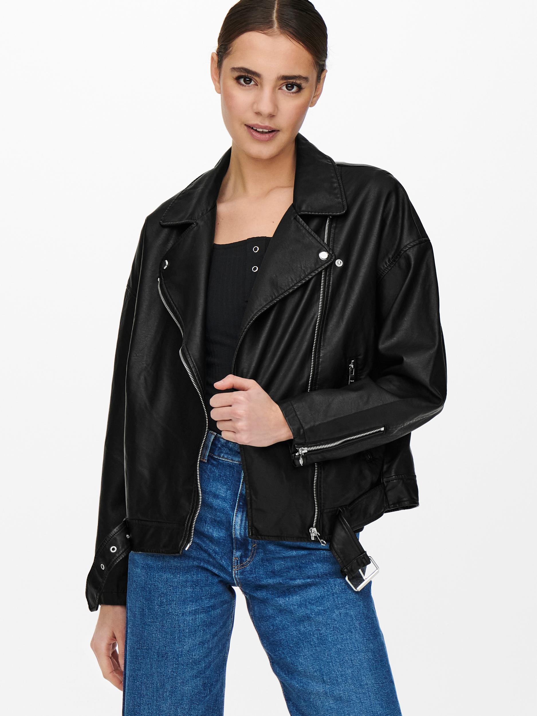 Biker-mallinen takki, jossa on helmassa vyö. Hihansuissa ja taskuissa on vetoketjut. Takissa on väljä mitoitus.