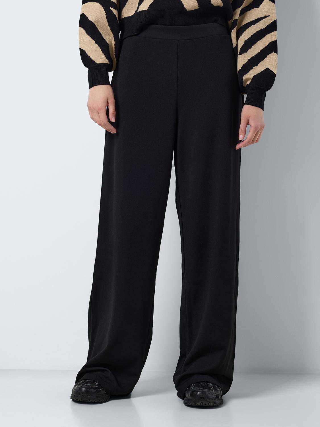 Korkeavyötäröiset, erittäin joustavat leveät housut.