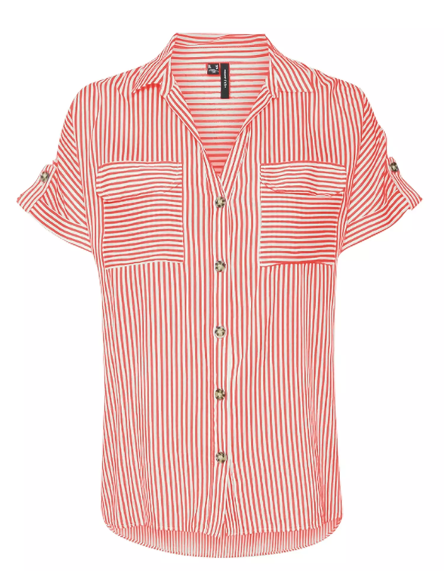 Lyhythihainen kauluspaita, jossa on rintataskut. Paidassa on käännetyt hihansuut.