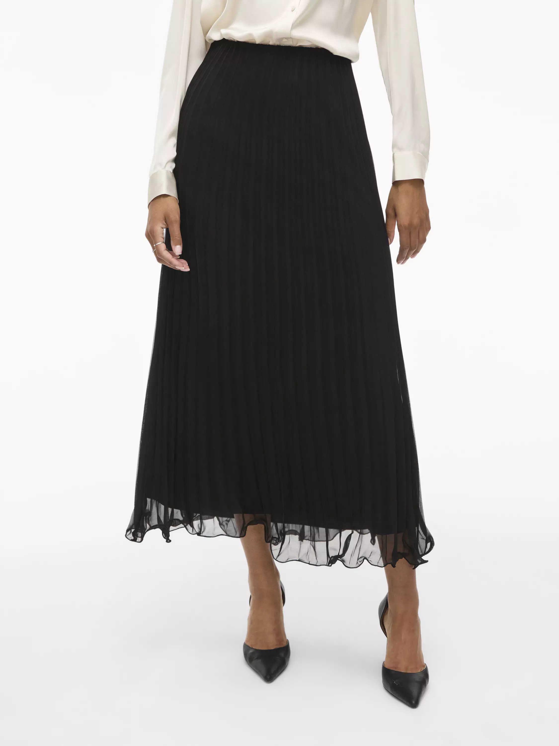Pitkä pliseerattu hame, jossa on vuori sekä joustava kuminauhavyötärö.