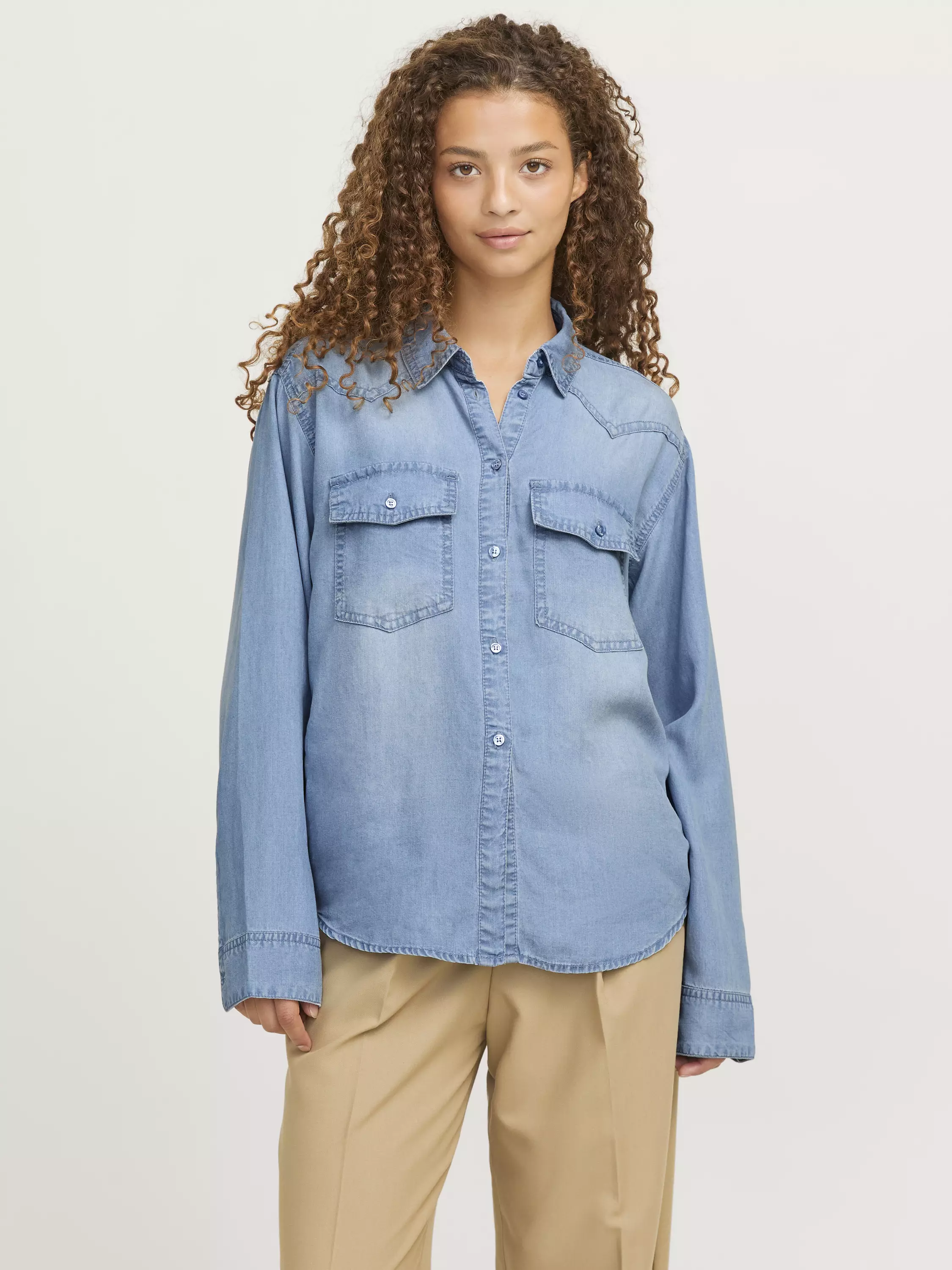 Rento kaulusoaita, joka on mukavan pehmoista lyocelliä. Edessä on kaksi nappitaskua.