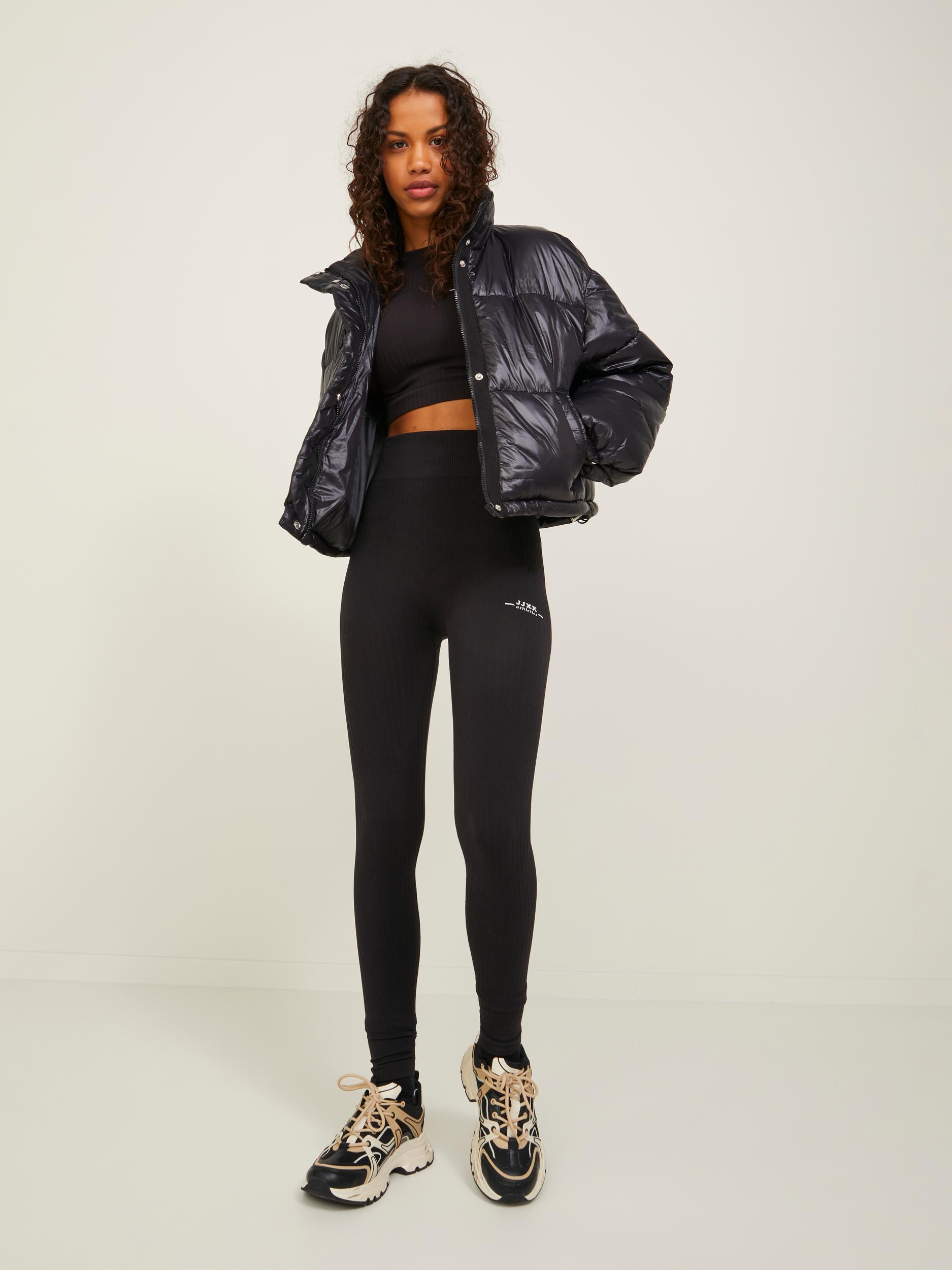 Saumattomat sekä korkeävyötäröiset ribbikankaiset treenilegginsit.
