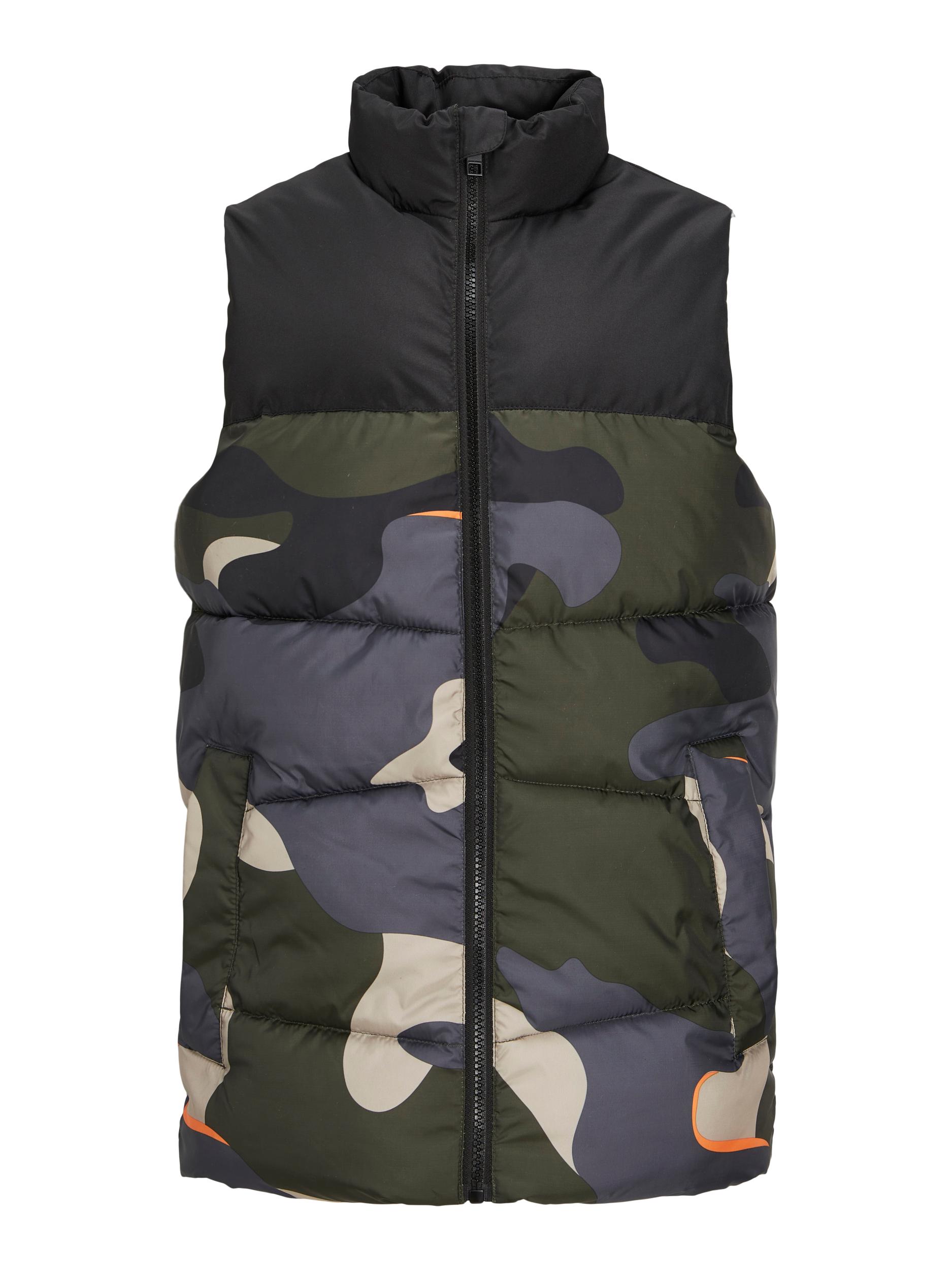 Kevyt toppaliivi, jossa on taskut ja korkea kaulus.