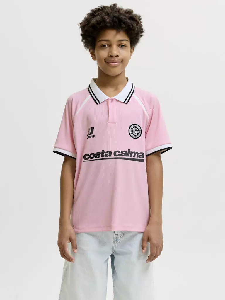 Kauluksellinen lasten pelipaita, jossa on edessä ylhäällä napit.