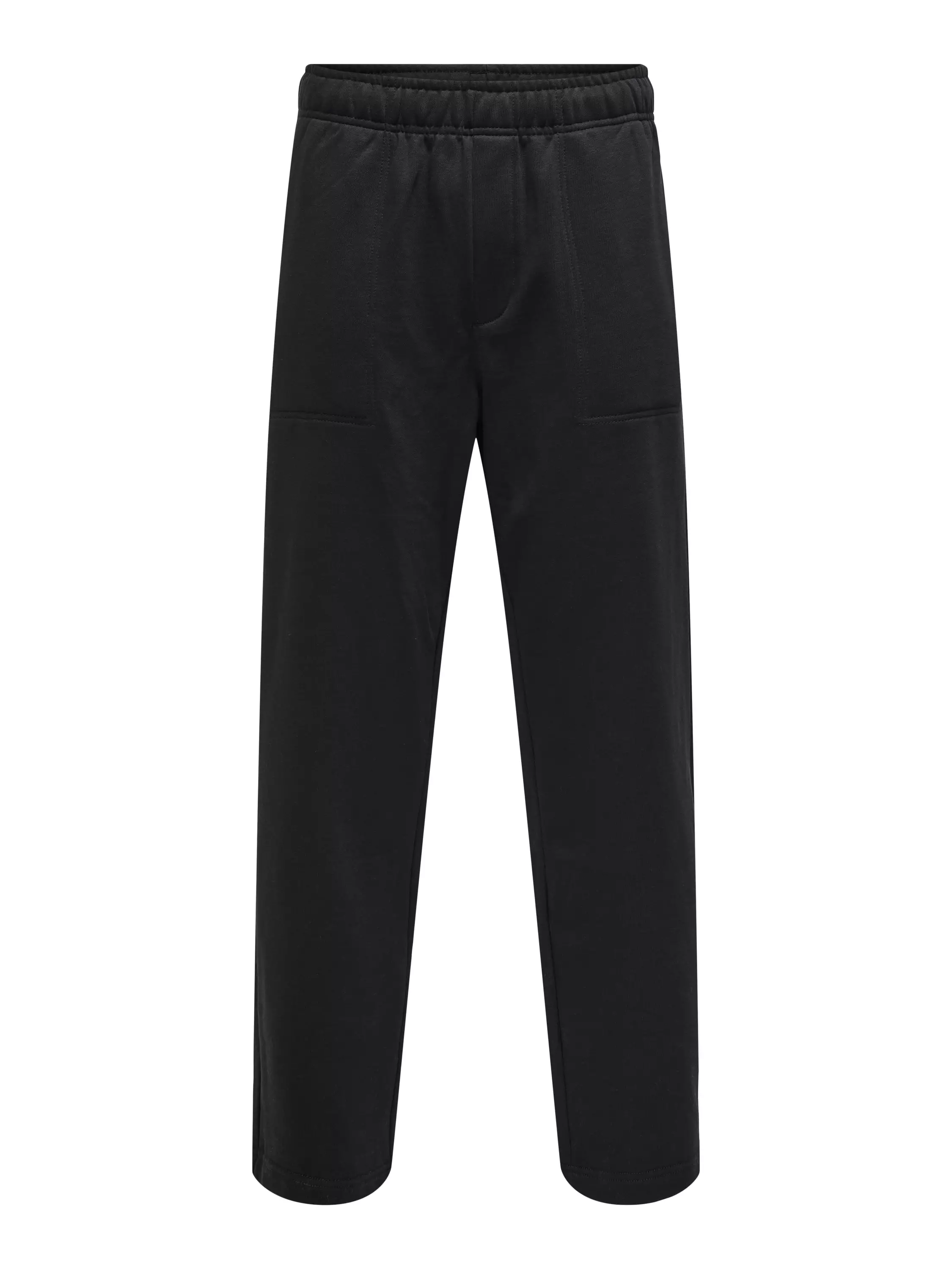 Relaxed fit collegehousut, joissa on suorat lahkeet. Housuissa on kiristysmahdollisuus.