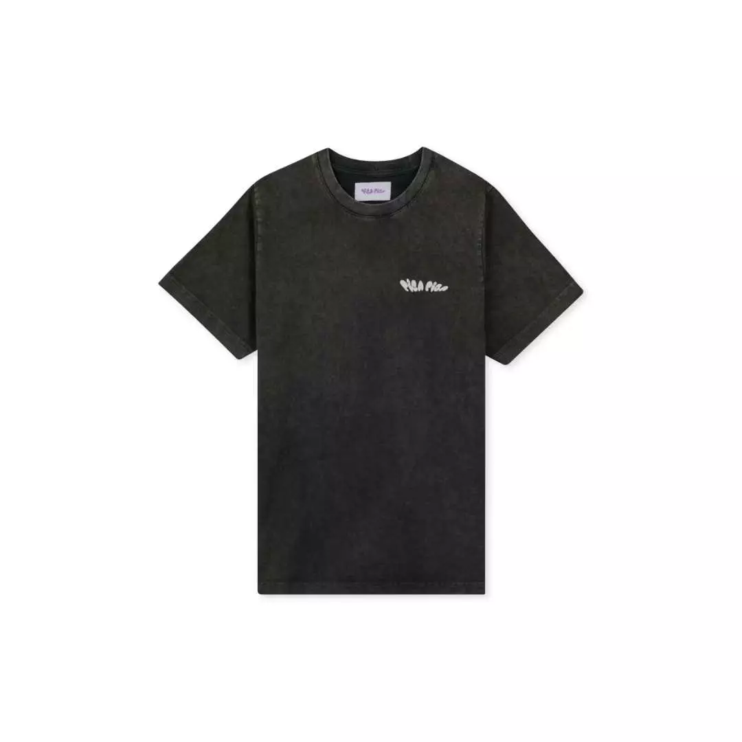 Oversize-mallinen t-paita, jossa on pieni logopainatus rinnassa ja selässä iso tekstipainatus.