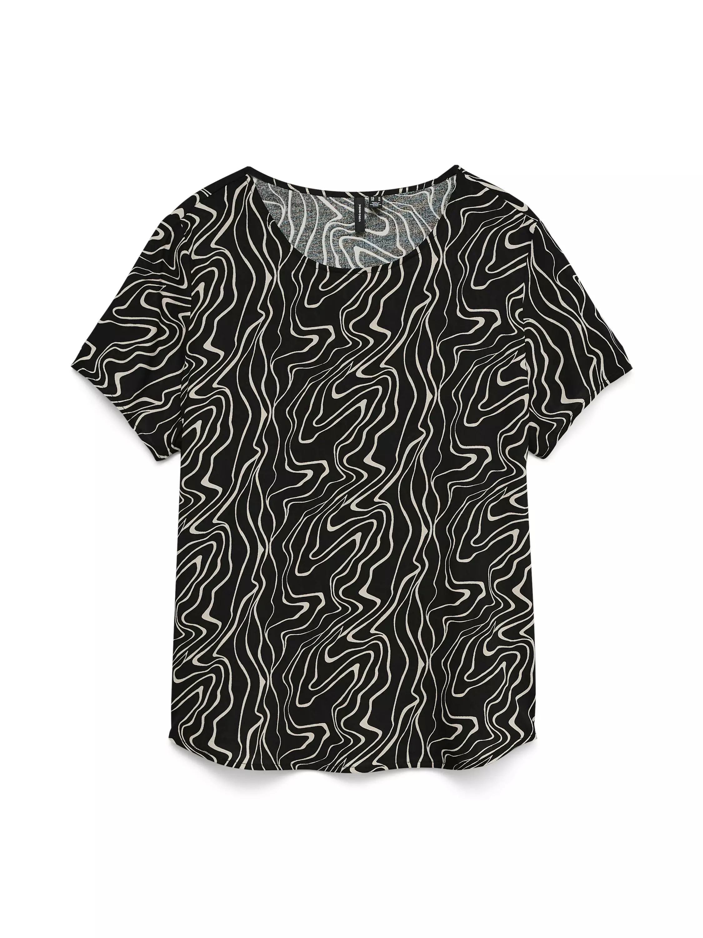 Lyhythihainen paita, jossa on kaunis pyöristetty helma ja miellyttävä kangas.