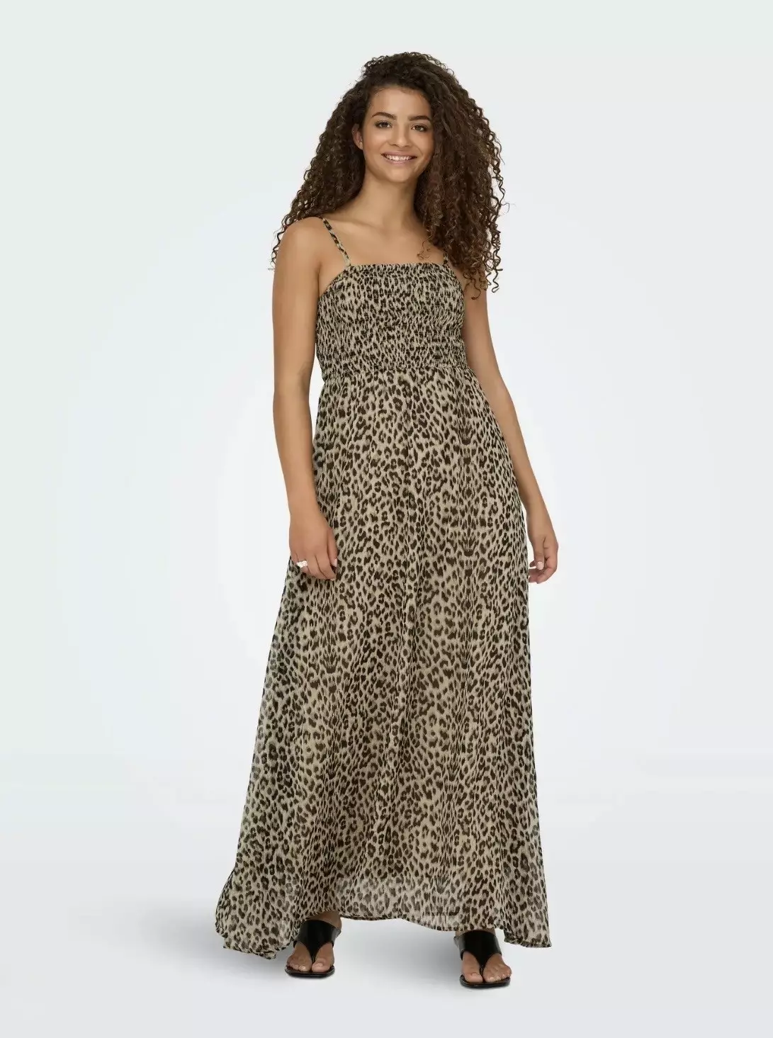 Pitkä mekko, jossa on ohuet säädettävät olkaimet. Mekossa on vuori ja smokkirypytys.