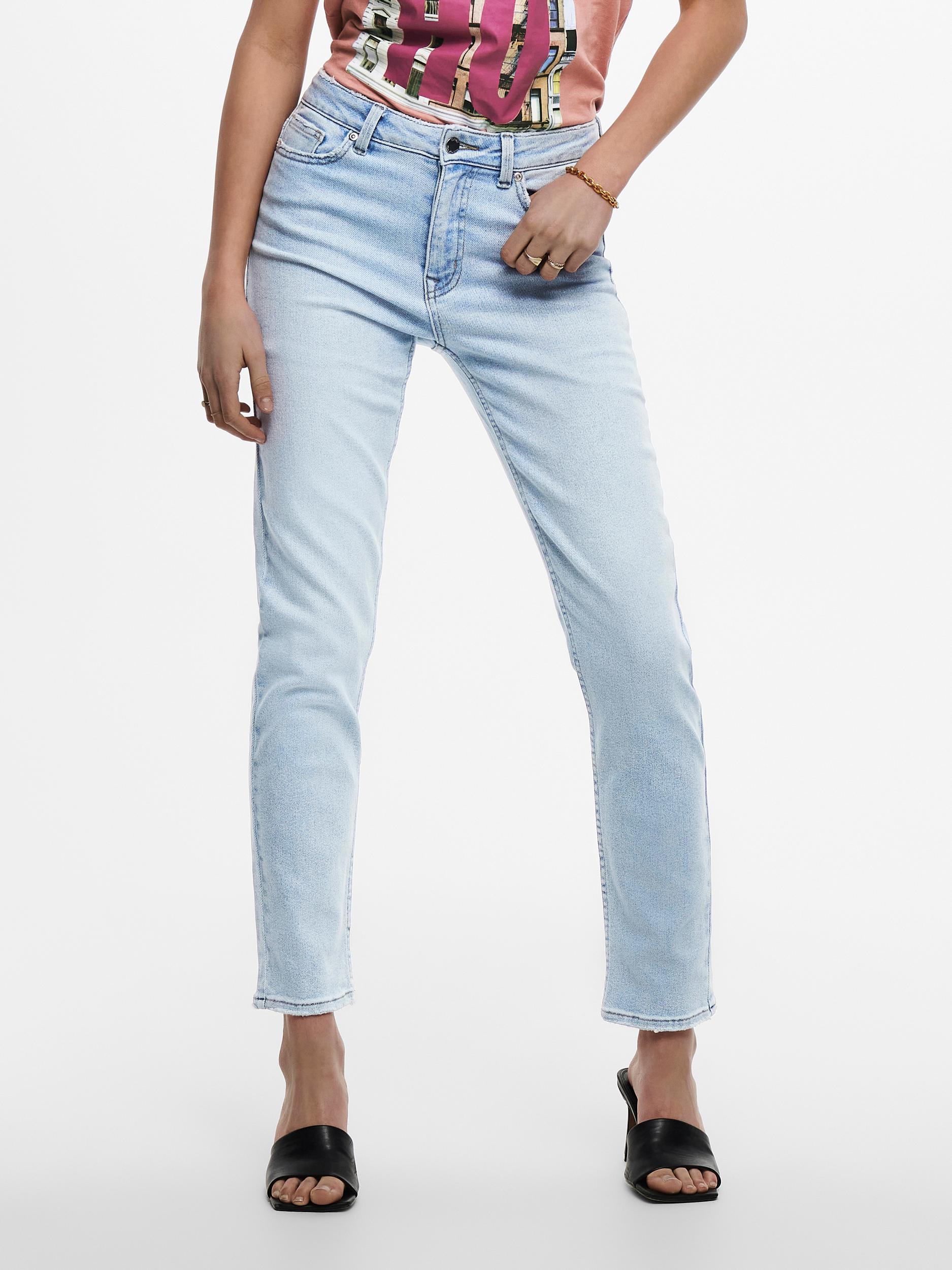 Vaaleansiniset nilkkamittaiset Straight fit -farkut suorilla lahkeilla ja normaalilla vyötäröllä.