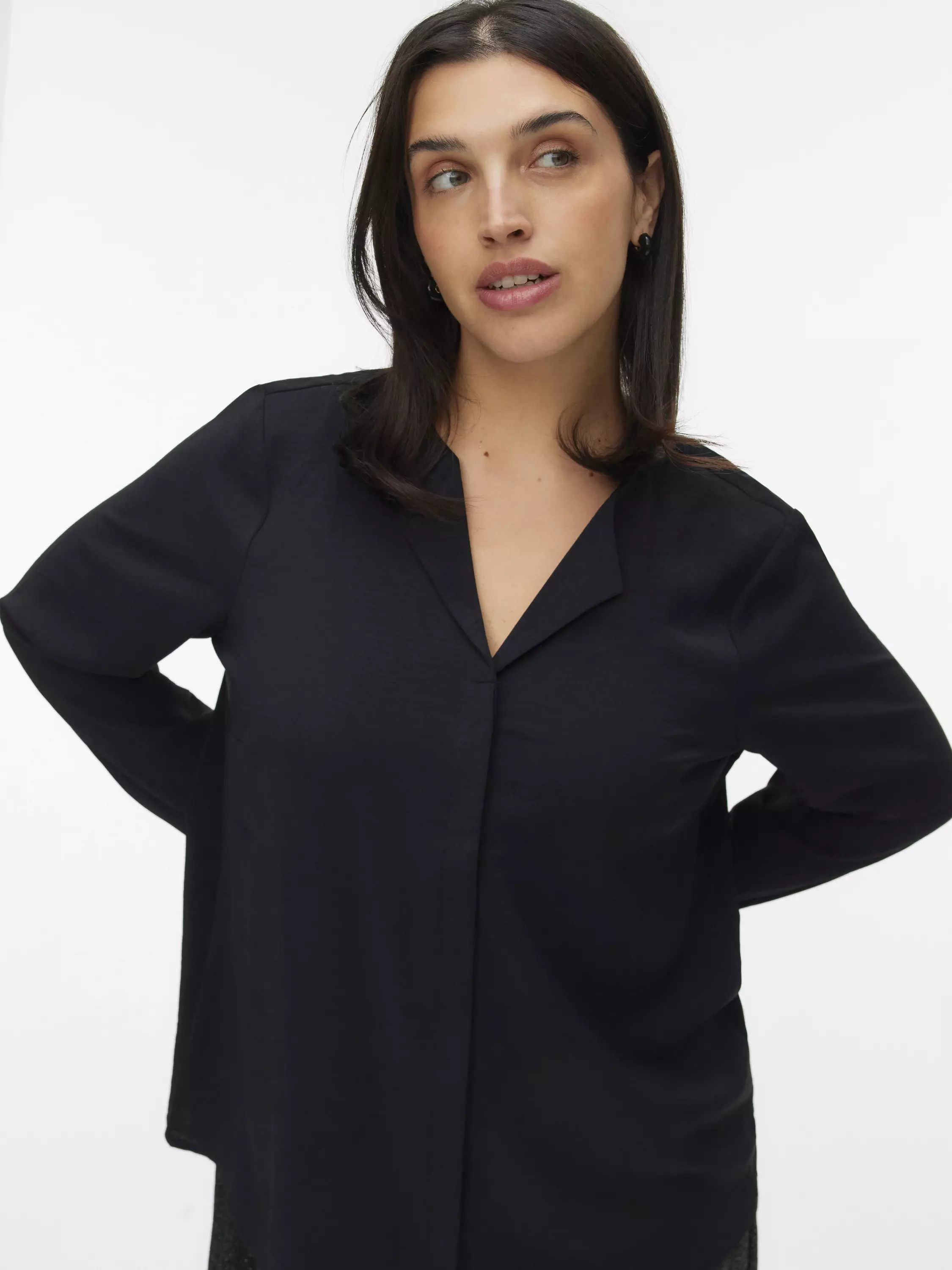Joustava pitkähihainen paita, jossa on edessä pienet kaulukset sekä piilonapitus.