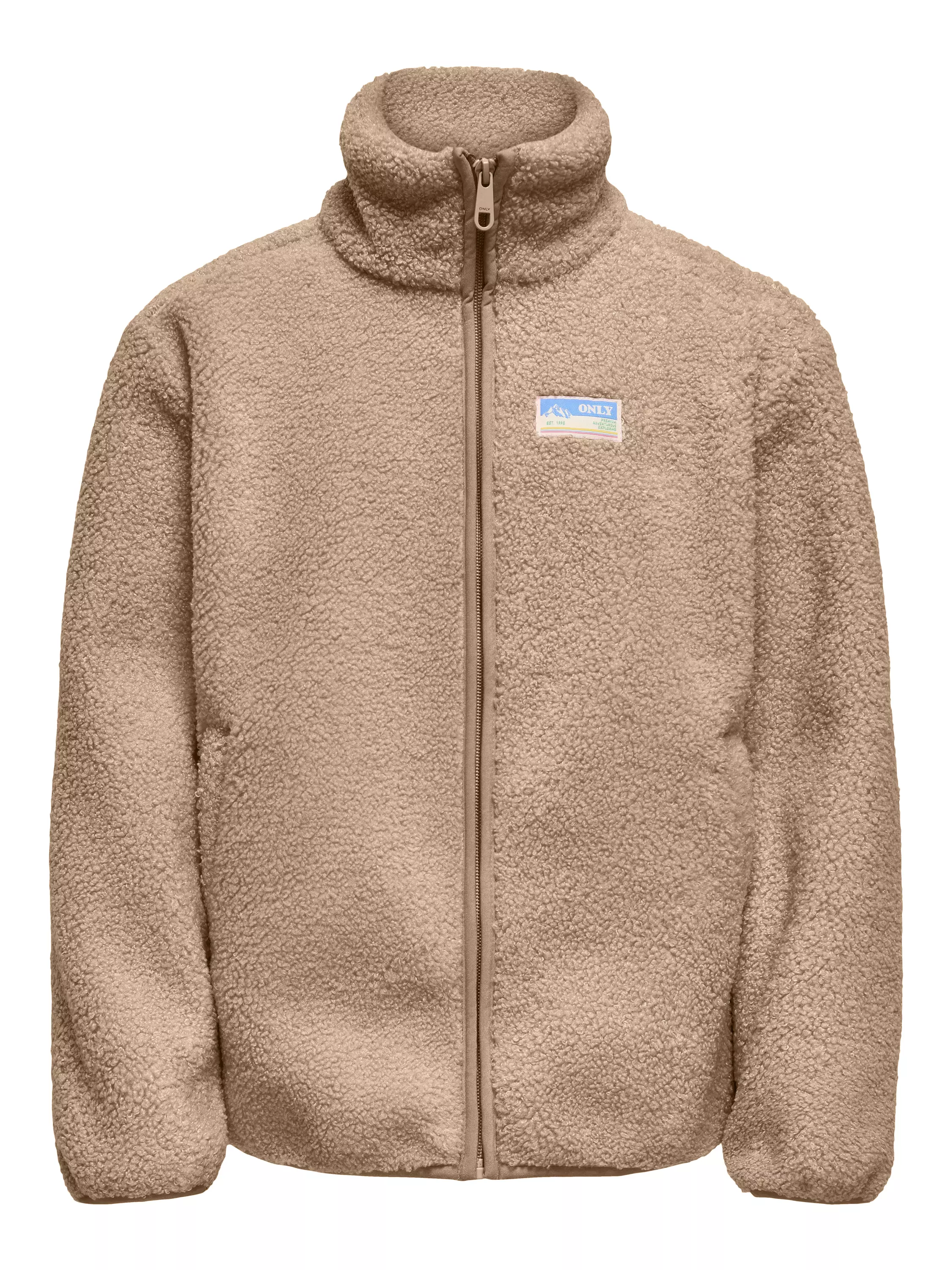 Teddytakki, jossa on pystykaulus sekä vetoketjukiinnitys. Takin sivuilla on taskut.
