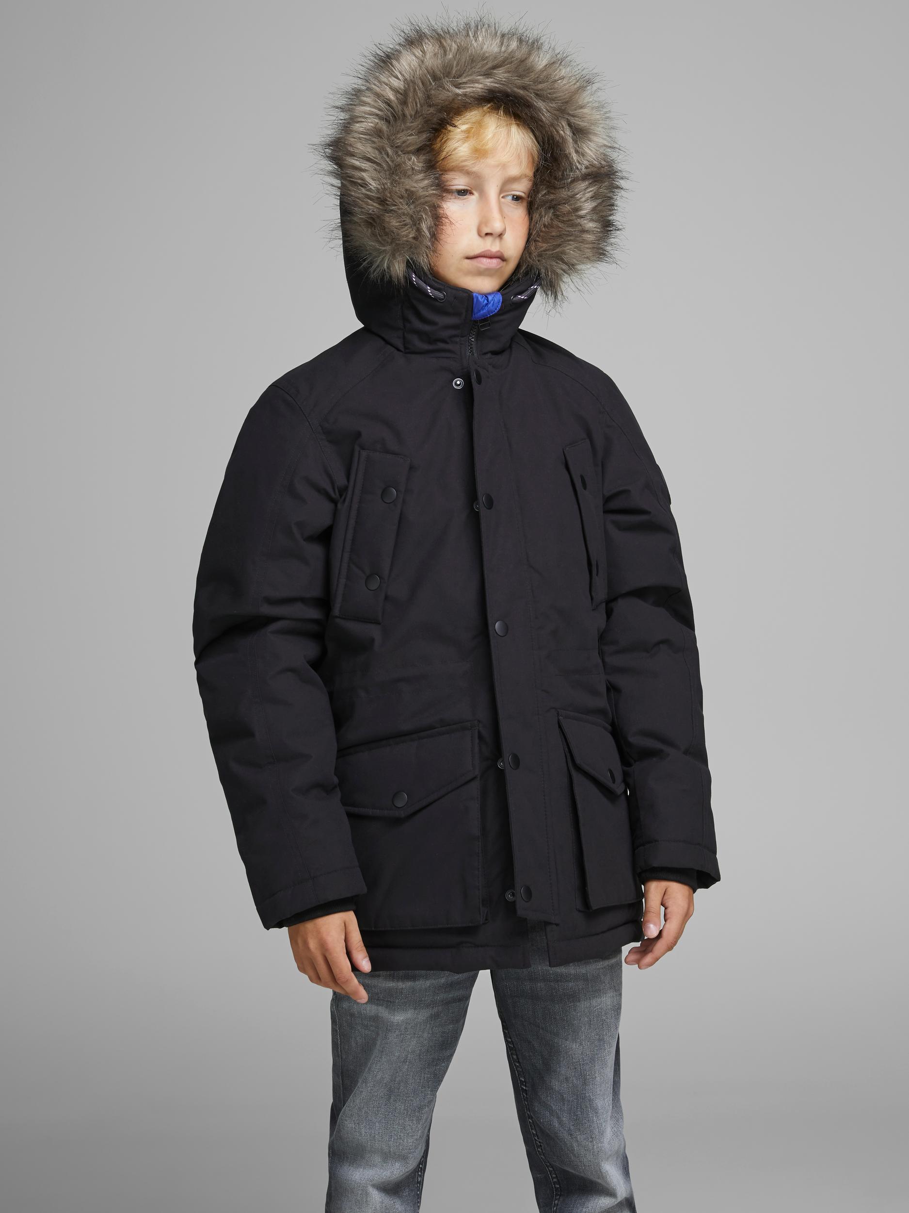 Vettä hylkivä ja tuulenpitävä toppatakki. Vyötäröllä sisäpuolella säädettävä kiristys ja hupun reunassa irroitettava karvareunus. Edessä neljä nepparitaskua ja sisällä povitasku. Hihansuissa resorit.