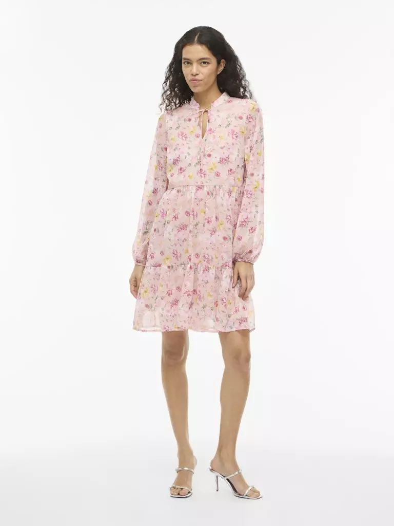 Pitkähihainen mekko,jossa on v-pääntie ja solmittavat nauhat pääntiessä. Mekko on vuoritettu, mutta hihat ovat läpikuultavat. Mekon pituus on n. polveen asti.