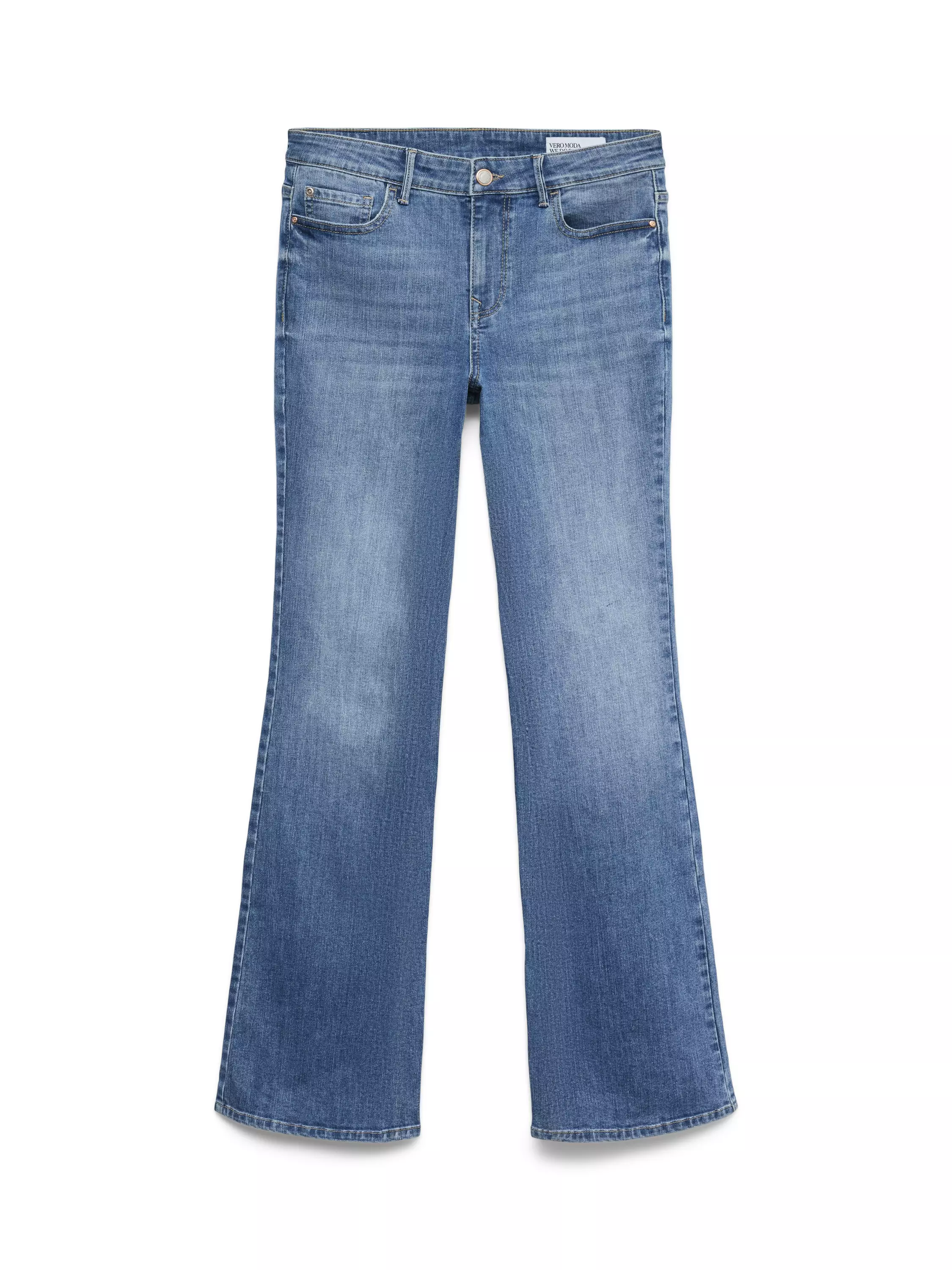 Bootcut -malliset keskisiniset farkut, joissa on keskikorkea vyötärö ja mukavasti joustoa. Farkuissa on läpälliset takataskut.