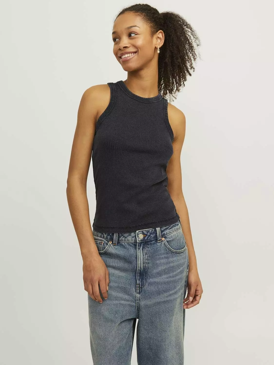 Topeissa on trendikkäät kulutetut värit. Materiaali on joustavaa ribbitrikoota. Topissa on erittäin napakka, hyvä laatu.