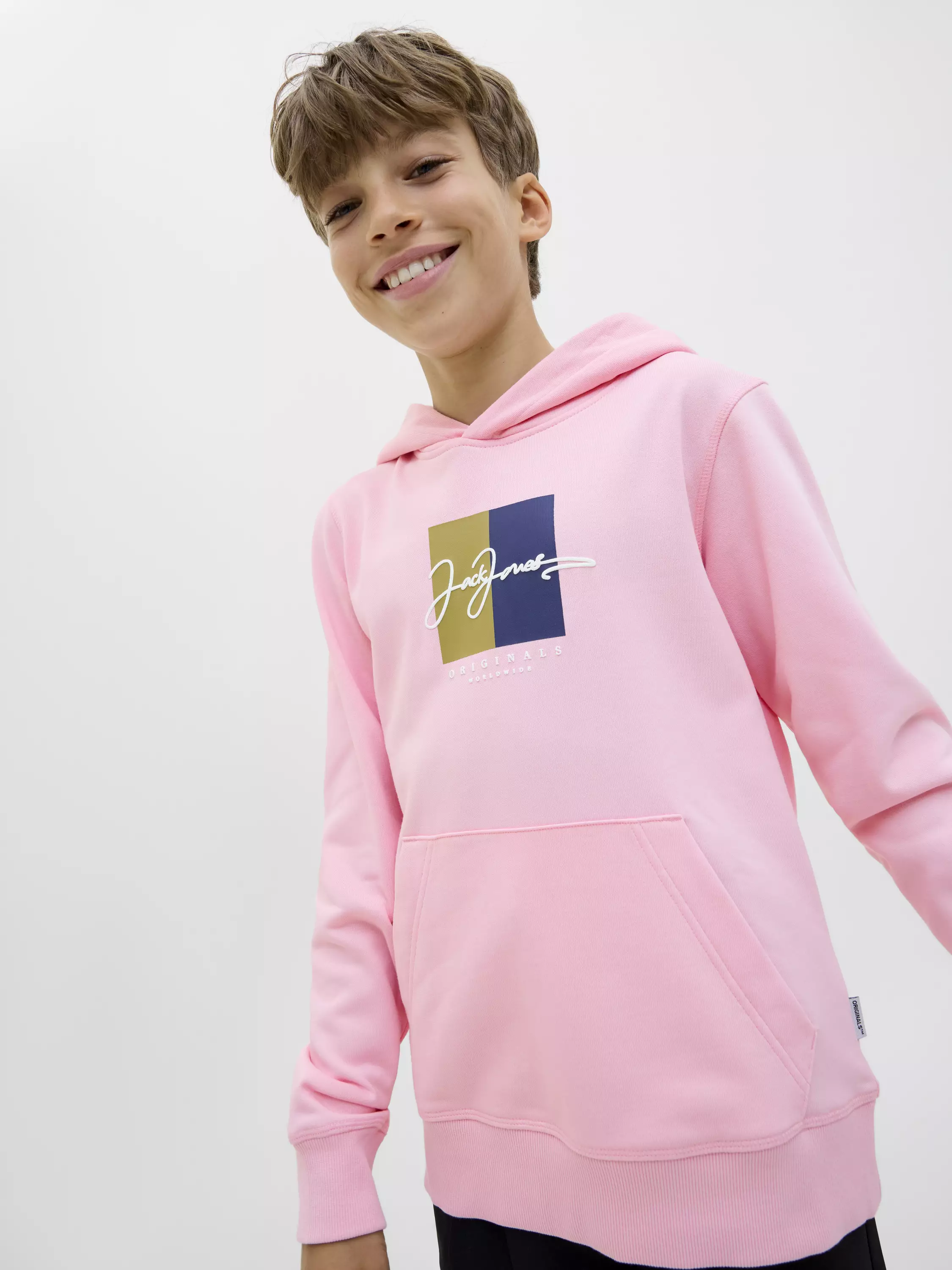 Huppari, jossa on edessä kengurutasku. Edessä logo-printti.