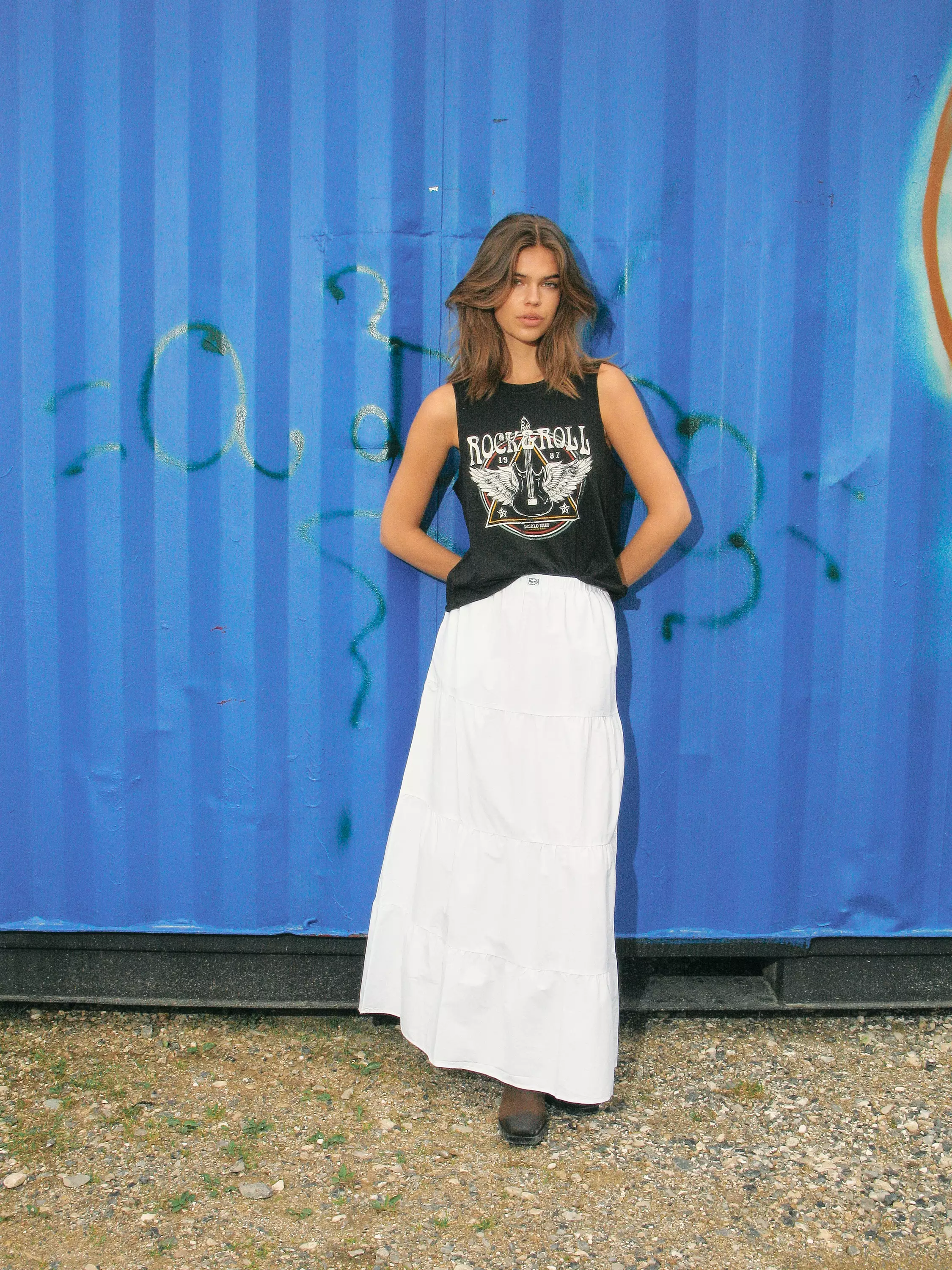 Maxi -mittainen kaunis hame, jossa on joustava kuminauhavyötärö. Hameessa on sivuilla taskut.