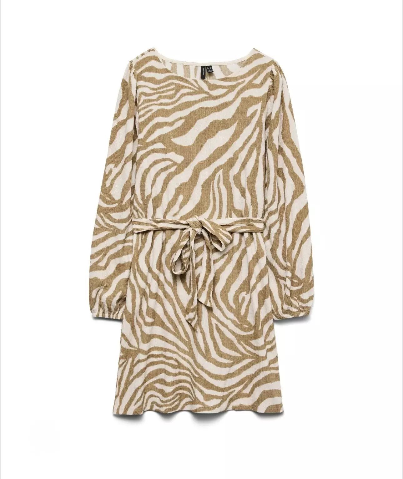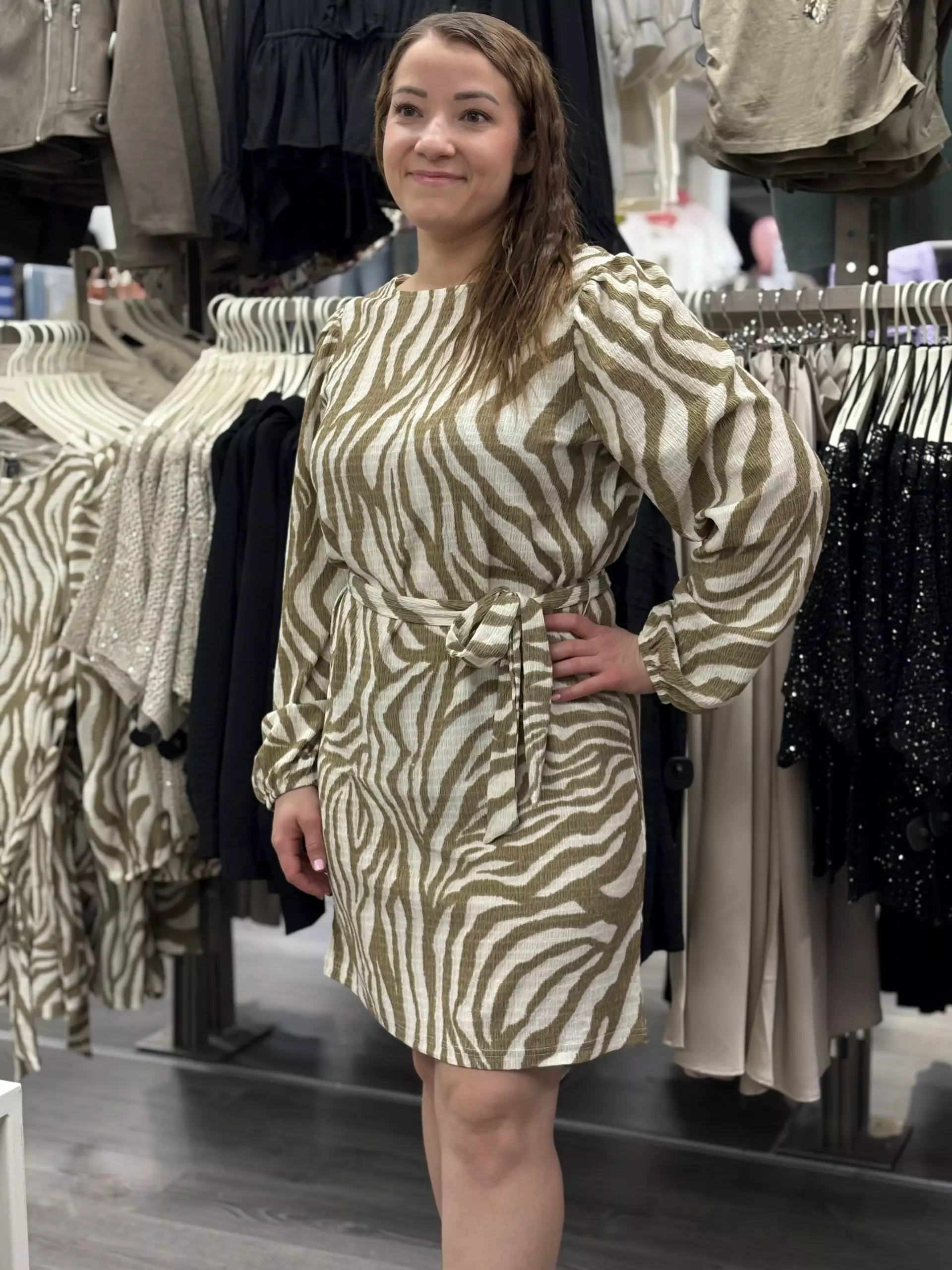 Midi-mittainen pitkähihainen mekko, jossa on vyö. Mekossa on erittäin joustava materiaali. Hihansuissa on joustavat kuminauhat.