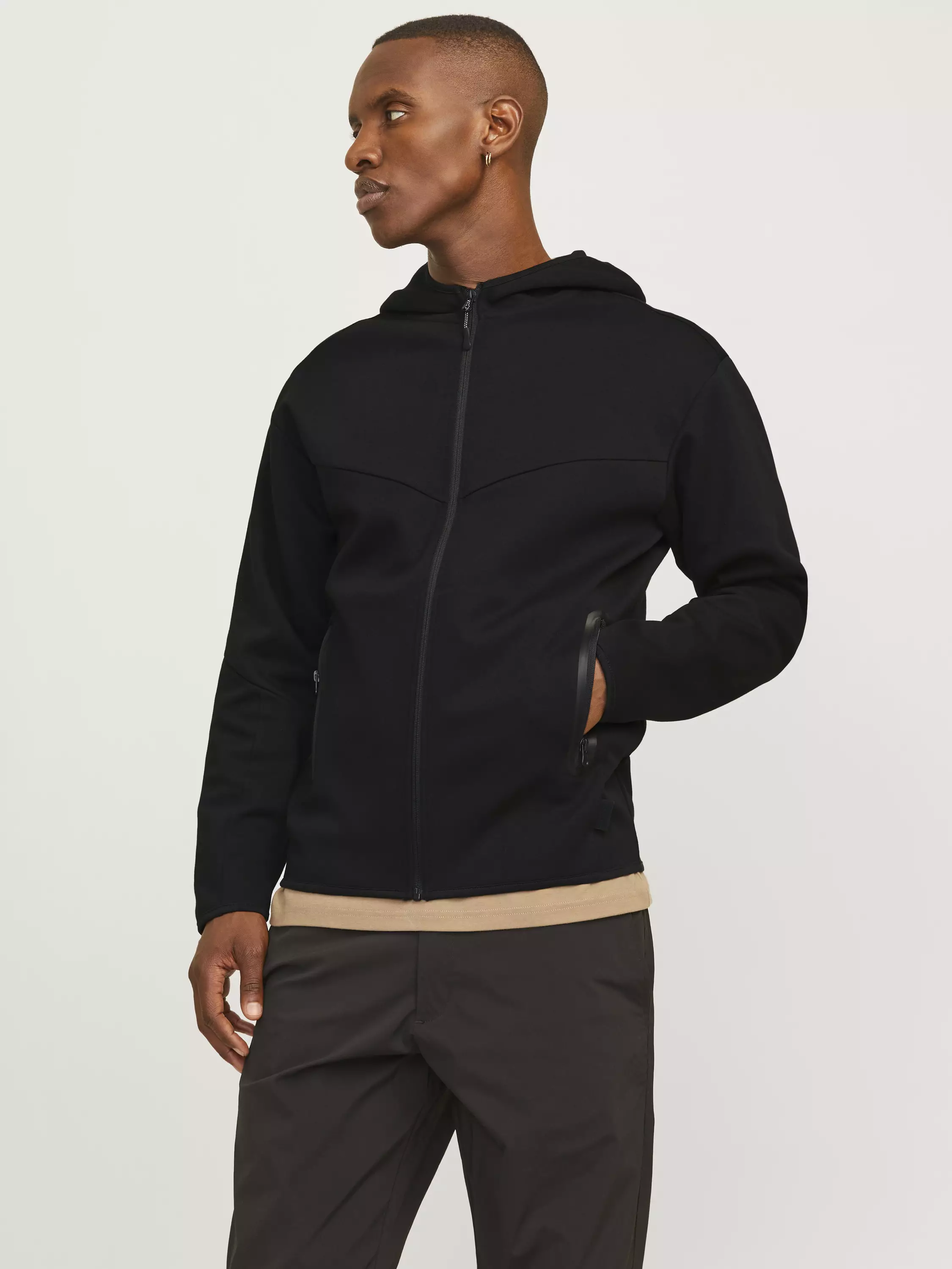 Suorahelmainen vetoketjuhuppari, jossa on vetoketjutaskut edessä.