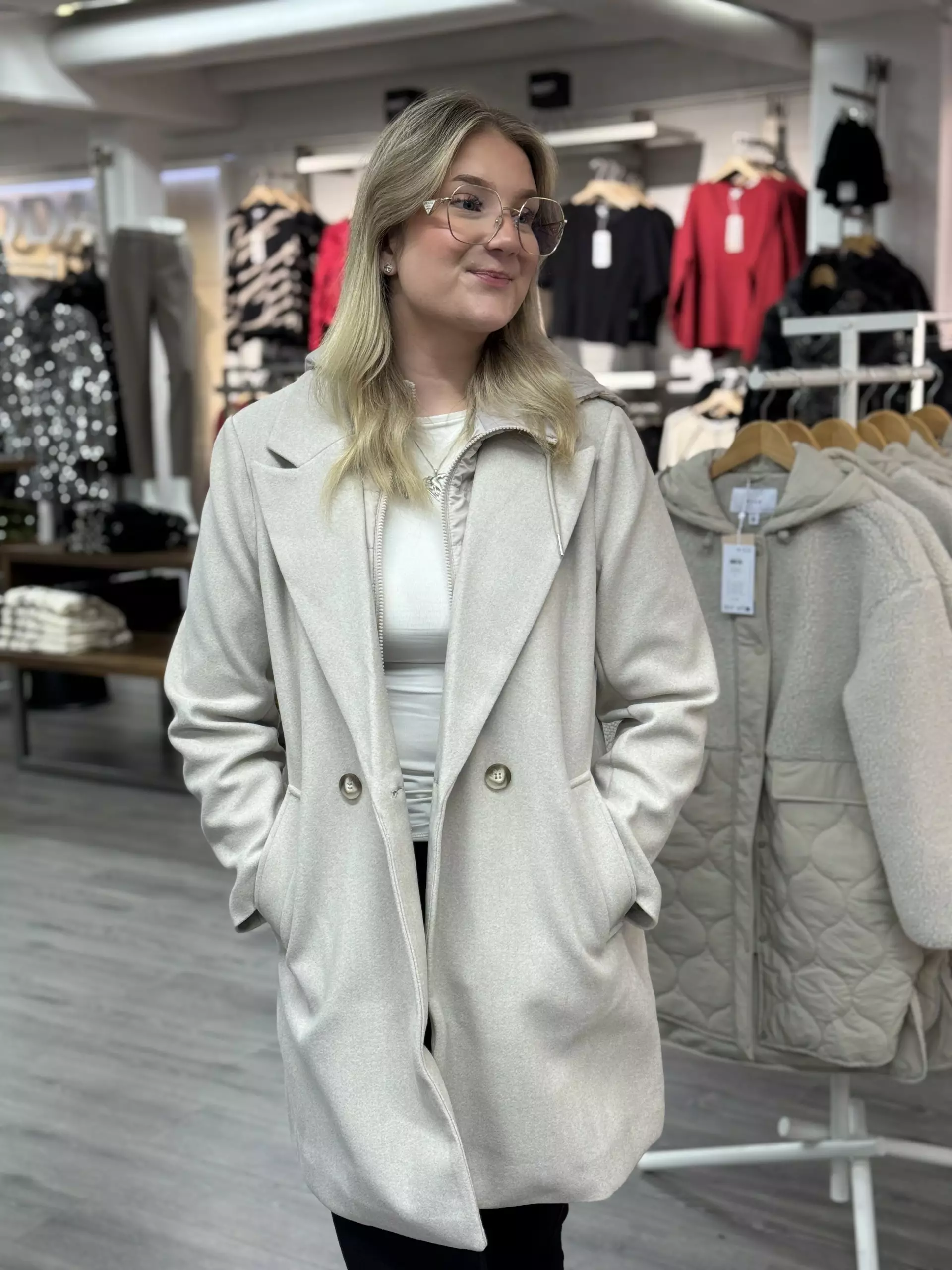 Ohuehko puolipitkä välikausitakki, jonka materiaali on villakangasmaista polyesteriä. Takissa on irroitettava toppahuppu. Takissa on herrainkaulukset ja kaksi sivutaskua.