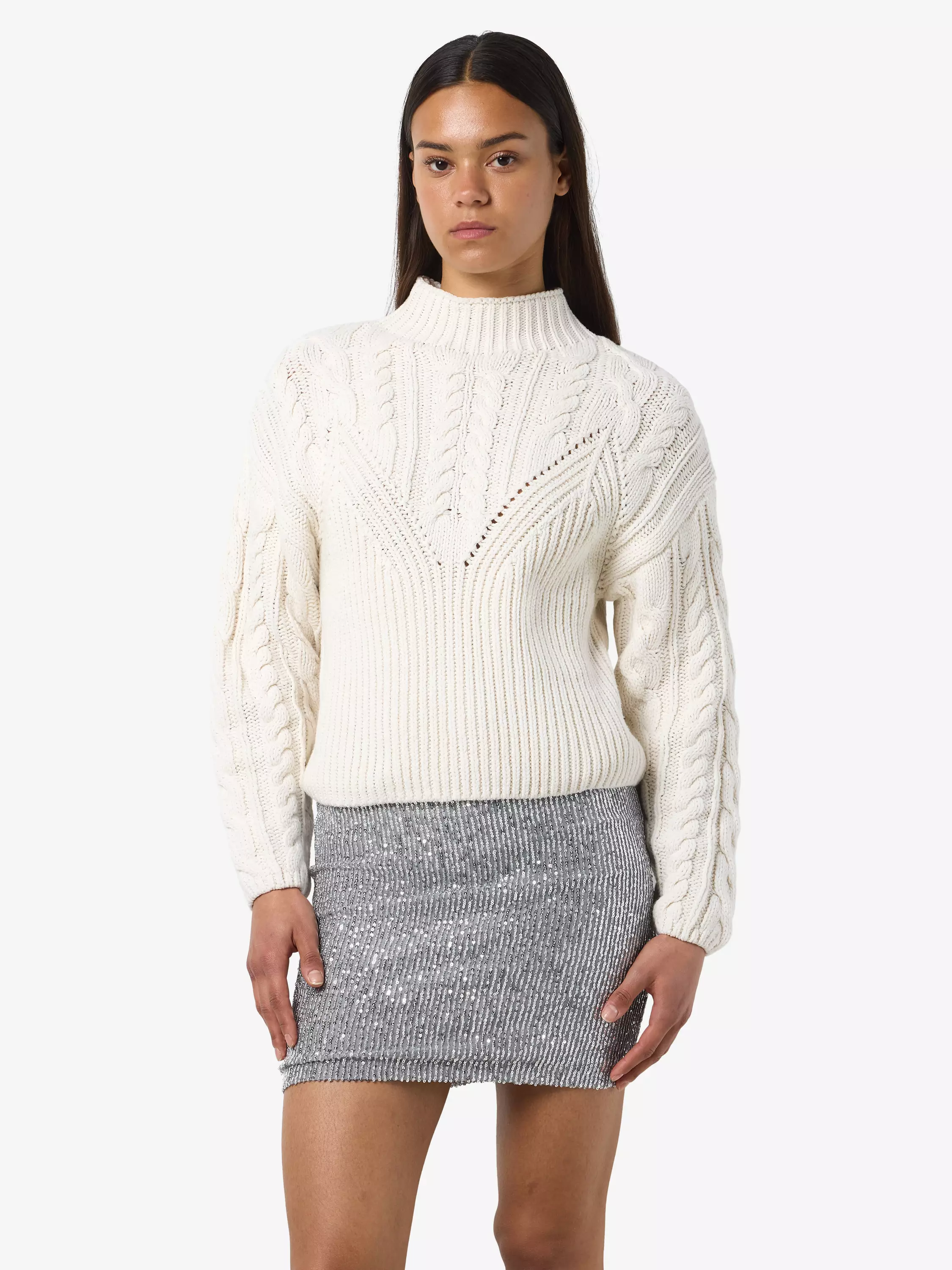 Lyhyt neulepaita, jossa on puolipoolokaulus. Kaunis palmikkoneule.
