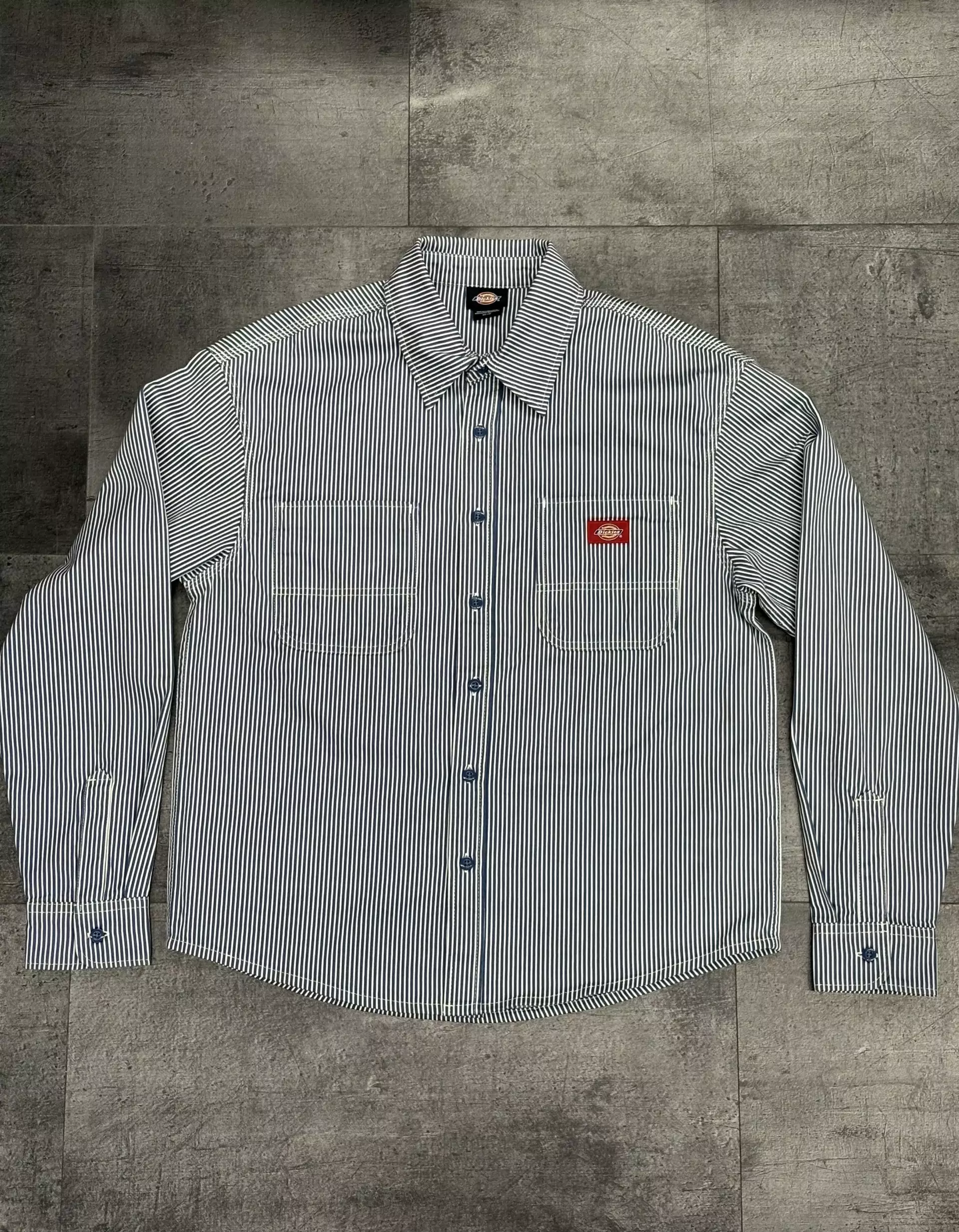 Raidallinen kauluspaita, jossa on vahva kangas. Edessä ja hihansuissa on nappikiinnitys. Edessä on myös rintataskut.
