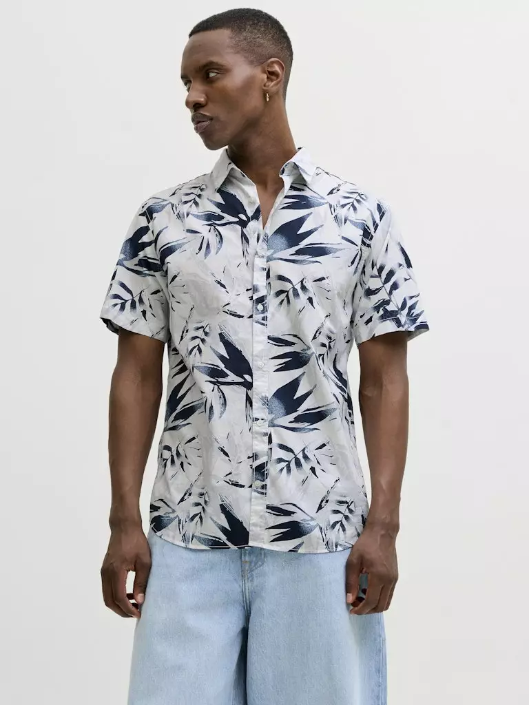 Lyhythihainen regular-mallinen kauluspaita, jossa on kesäinen printti.