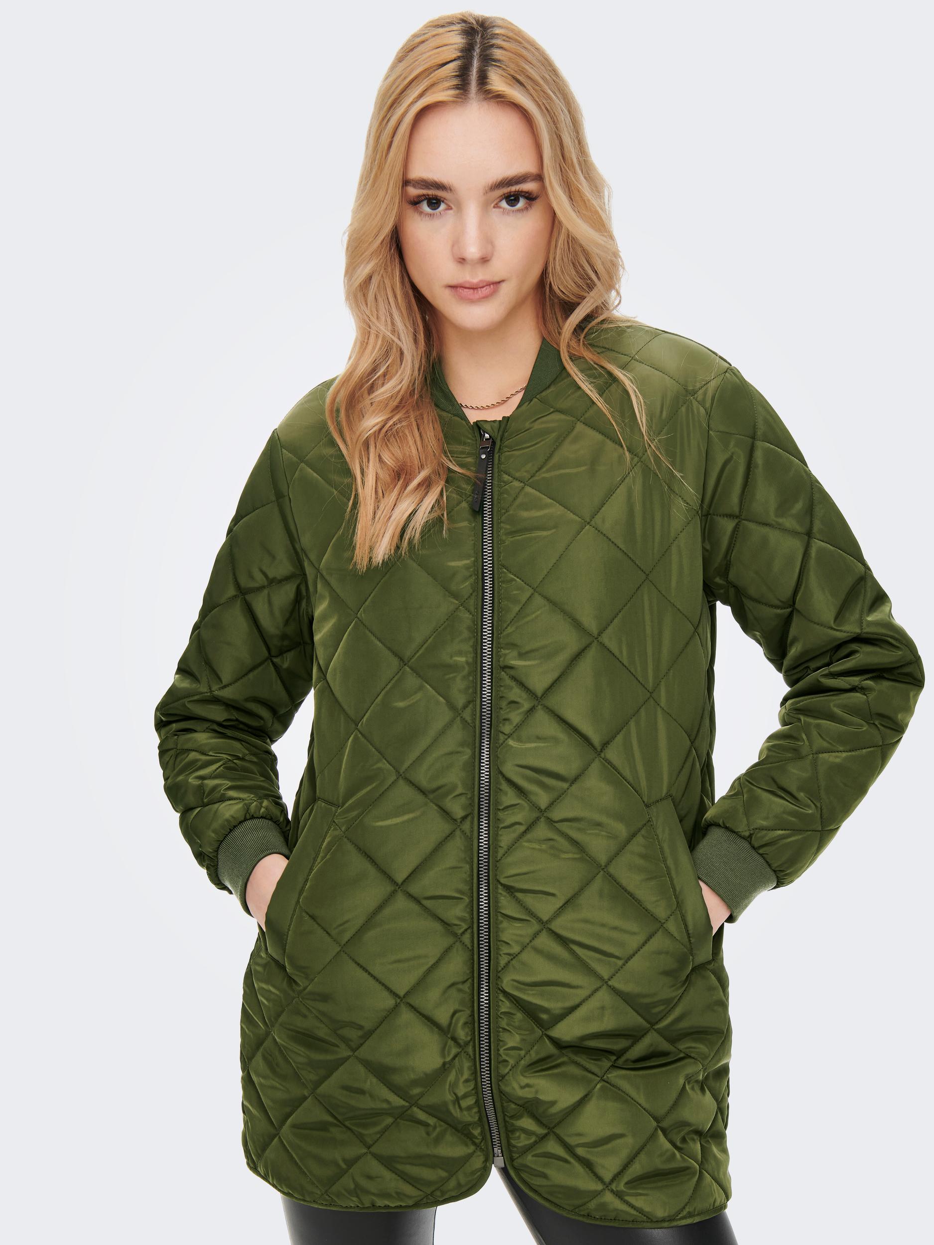 Puolipitkä tikkitakki, jossa on matala kaulus ja nepparilla suljettavat sivutaskut. Takin hihoissa on resorit.