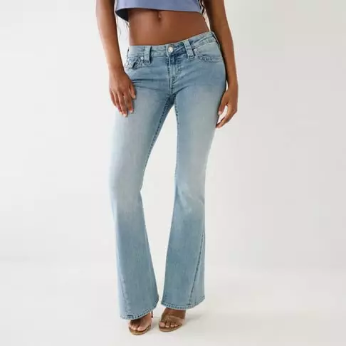 Bootcut farkut, joissa on matala vyötärö ja mukavasti joustoa. Farkuissa on läpälliset takataskut.