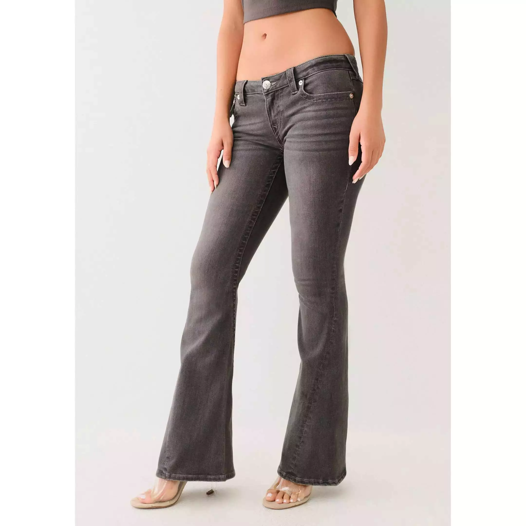 Bootcut farkut, joissa on matala vyötärö ja mukavasti joustoa. Farkuissa on läpälliset takataskut.
