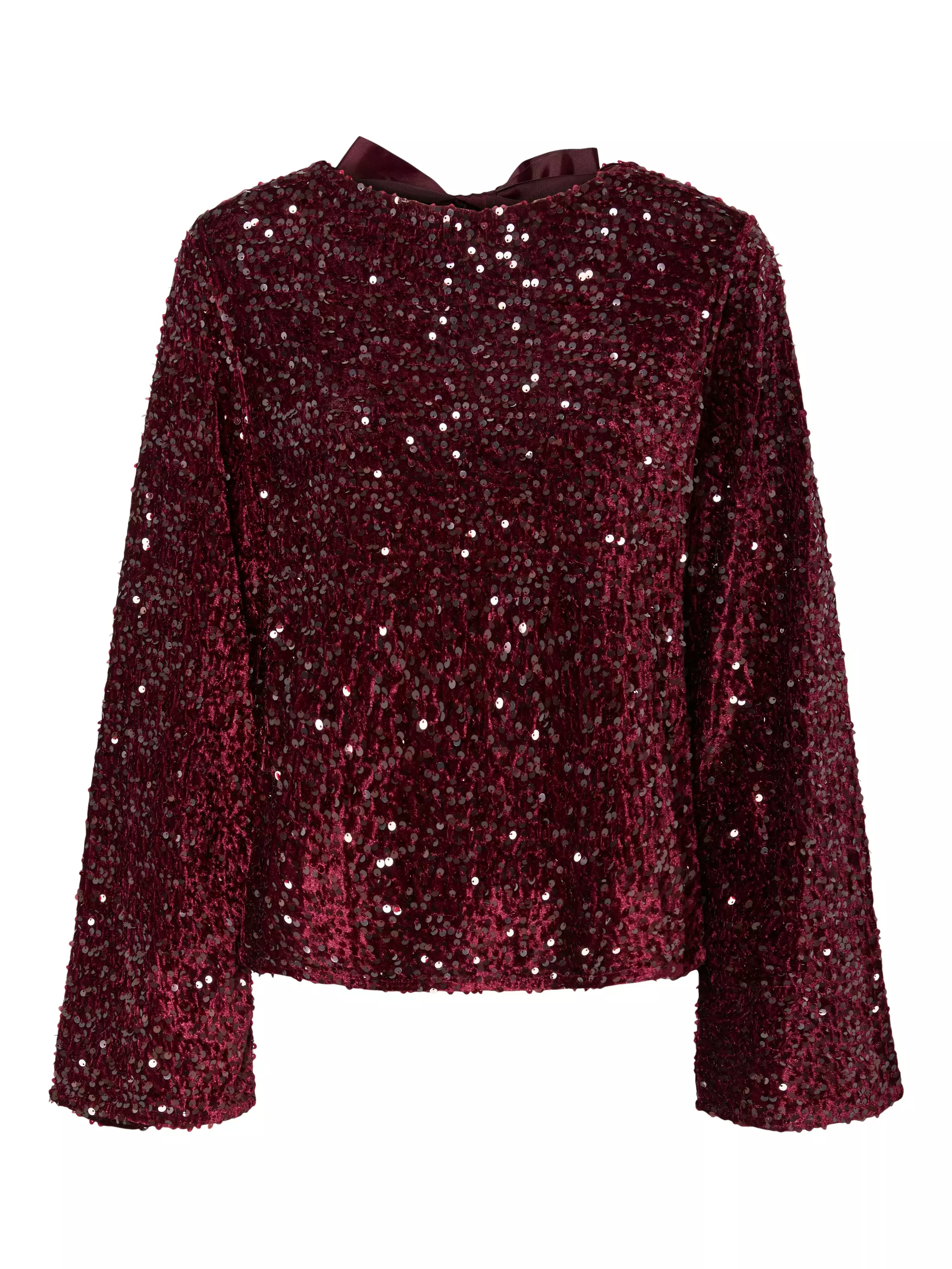 Ptkähihainen samettipintainen paljettipaita, jossa on iso kaunis rusetti selkäpuolella.