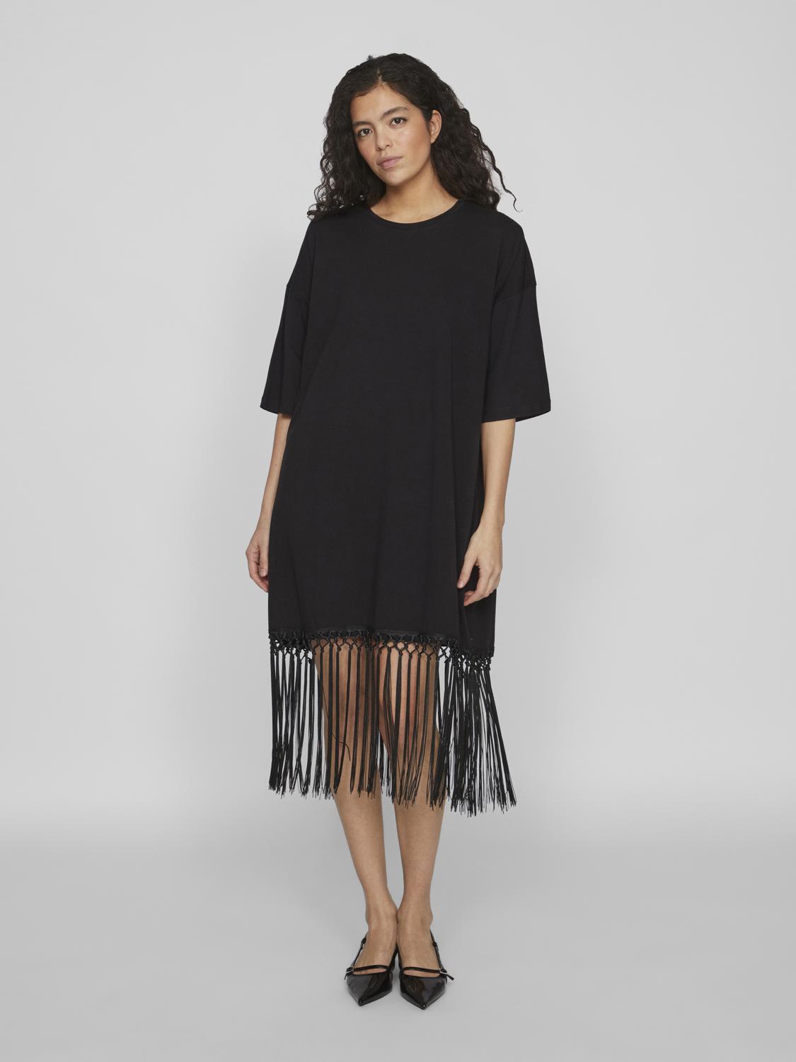 Supersuosion saanut hihallinen hapsumekko! Polvimittainen, pyöreä pääntie ja helmassa hapsusomisteet. Mekko on todella reilua kokoa, suosittelemme ottamaan normaalia kokoa pienemmän.