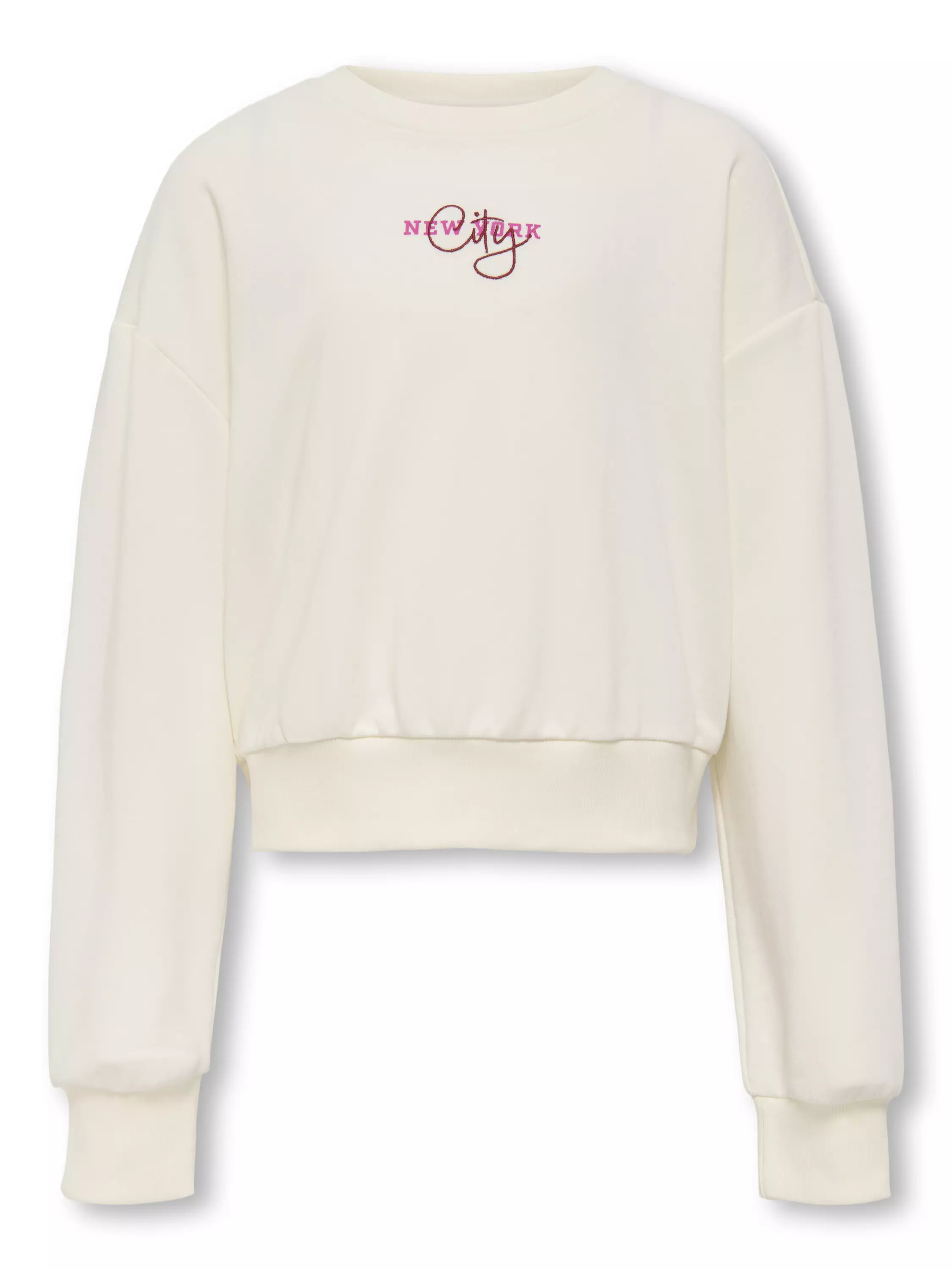 Oversize -mallinen collegepaita, jossa on edessä pieni painatus ja selkäpuolella isompi painatus.