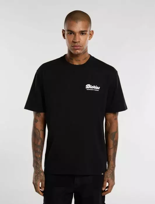 Relaxed-fit t-paita, jossa on hieno printti selässä ja edessä pienempi printti.