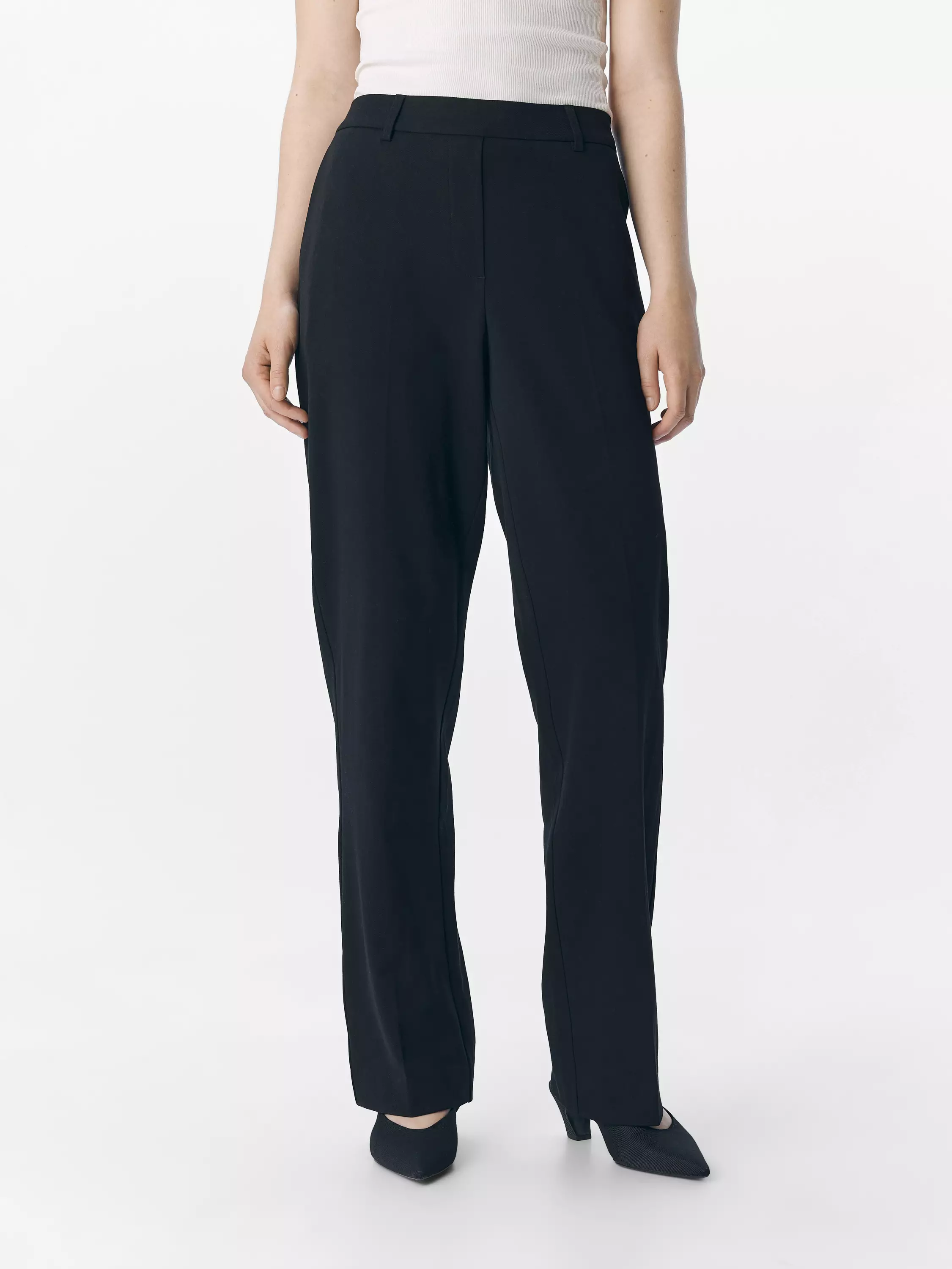 Suoranmalliset housut, joissa on sivutaskut ja medium-vyötärön korkeus. Housuissa on kuminauha vyötäröllä sekä vyölenkit