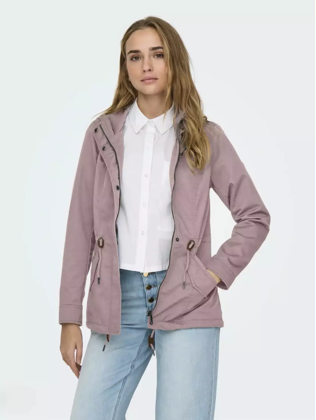Puolipitkä parkatakki, jossa on edessä kaksi nepparitaskua. Vyötäröllä ja helmassa on kiristysmahdollisuus.