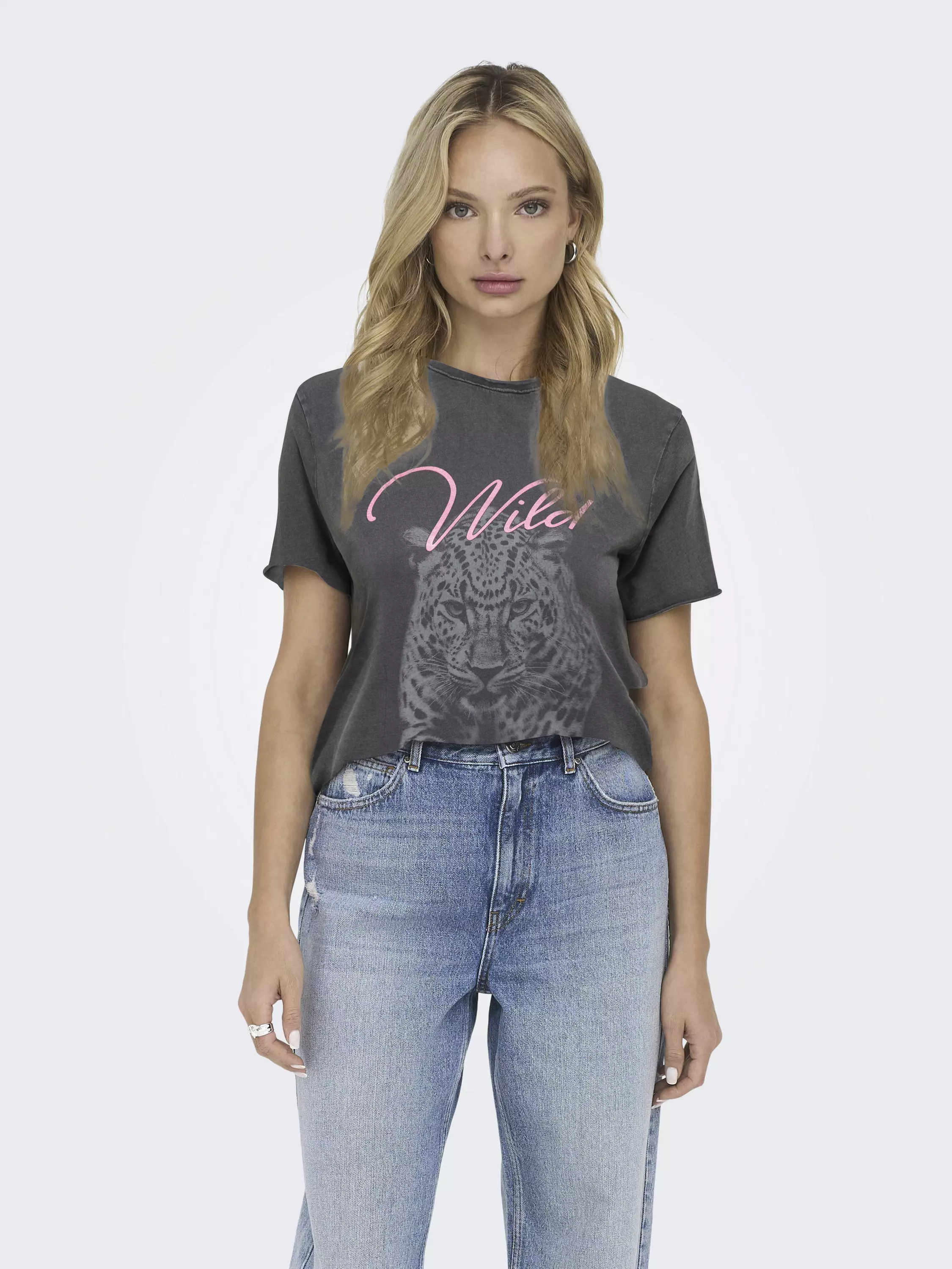 Tässä t-paidassa on upeat printit! Hihansuut ja helma on huolittelematonta trikoota.