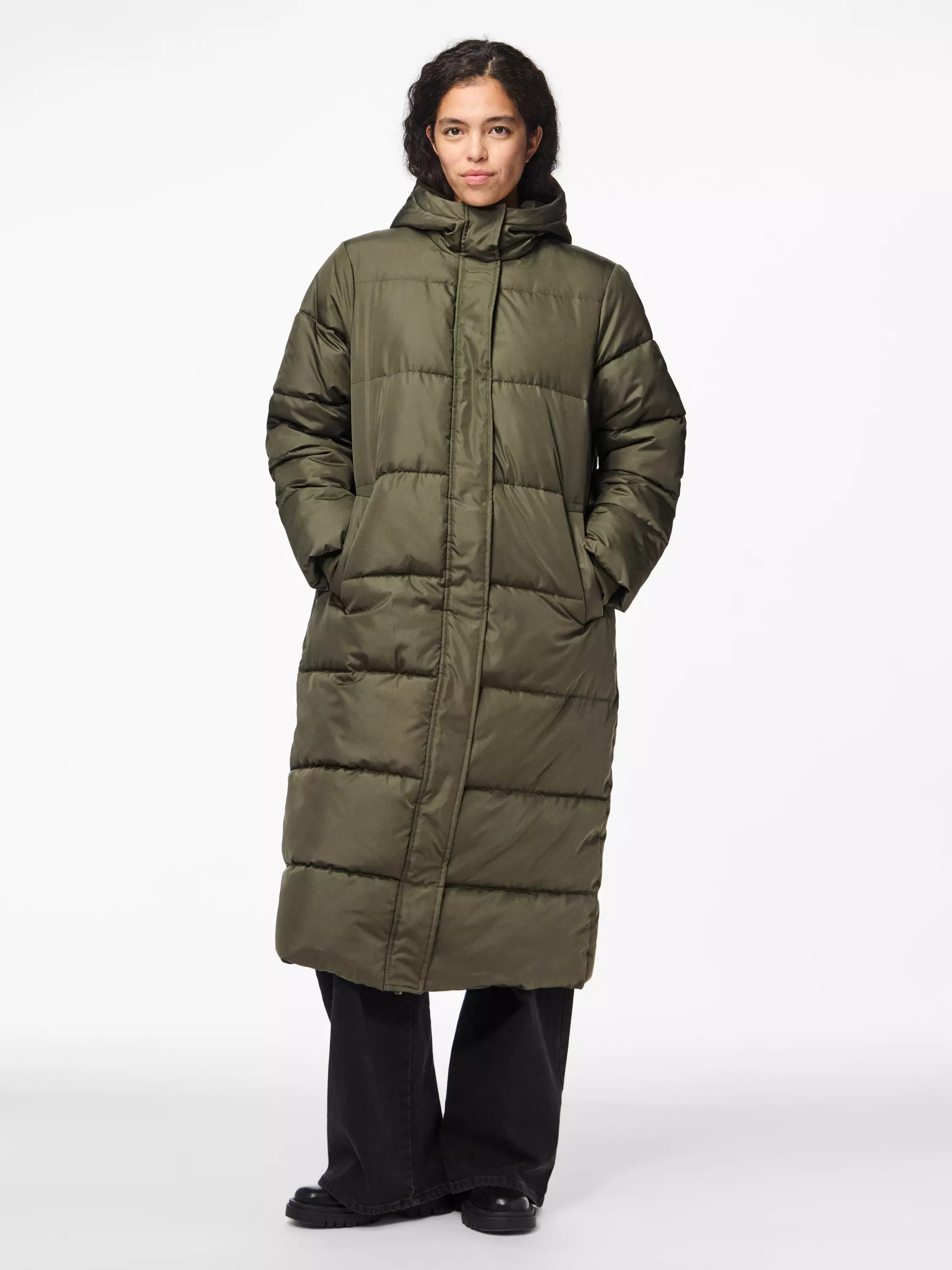 Pohjemittainen hupullinen takki, jossa on nappilista vetoketjun edessä. Takissa on kaksi avotaskua edessä. Takissa on reilu mitoitus. S vastaa kokoa M jne.