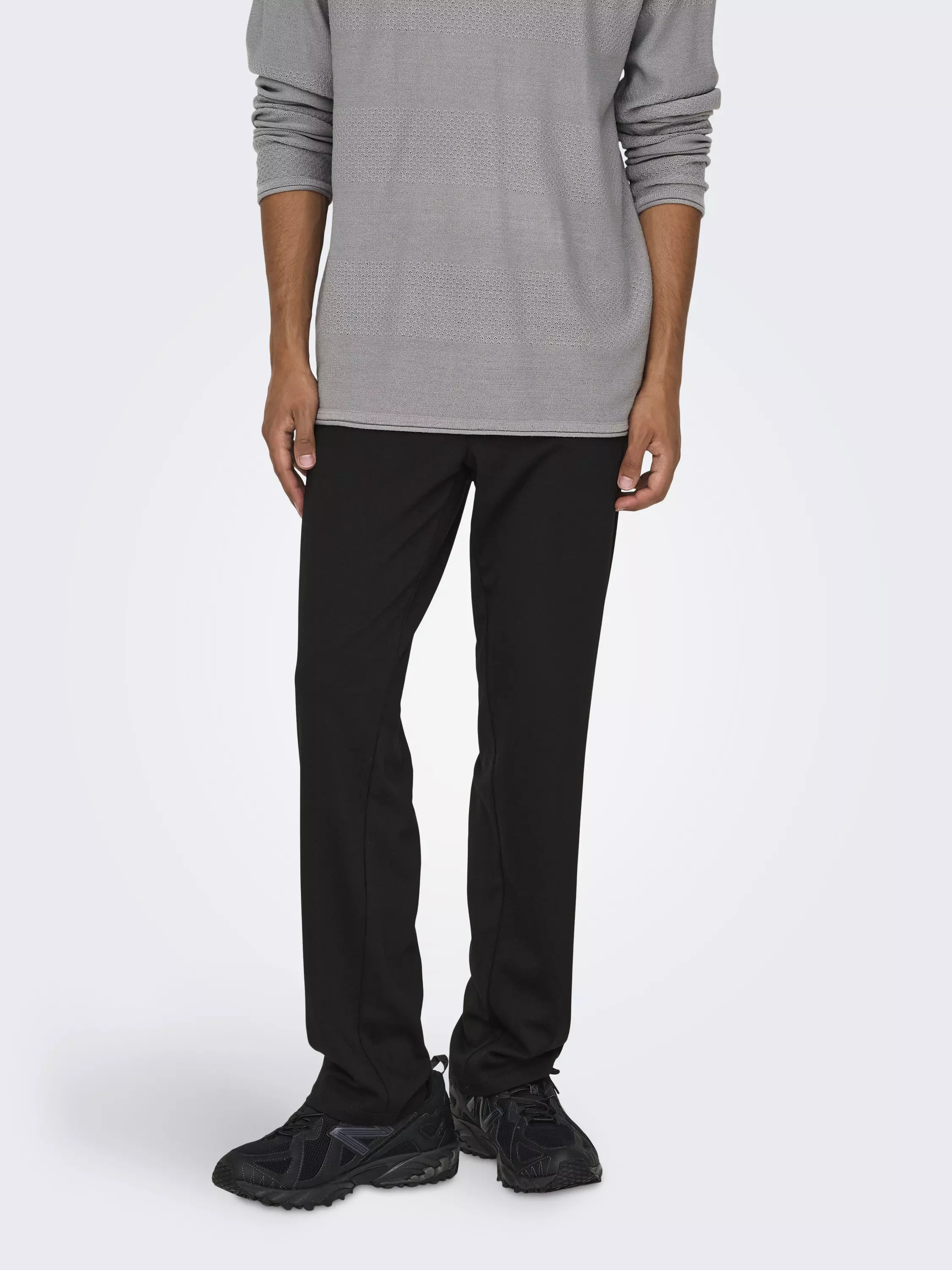 Housut, joissa on suora lahje ja mukavan joustava kangas.