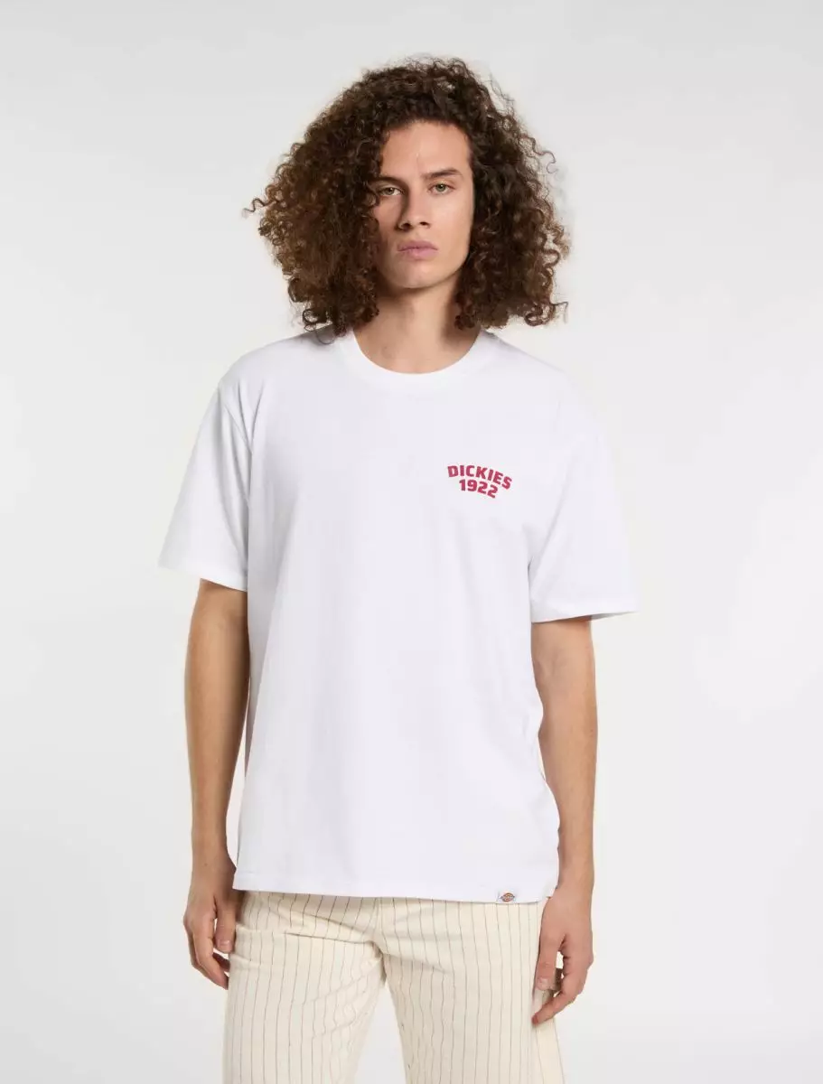 Relaxed-fit t-paita, jossa on hieno printti selässä ja edessä pienempi printti.